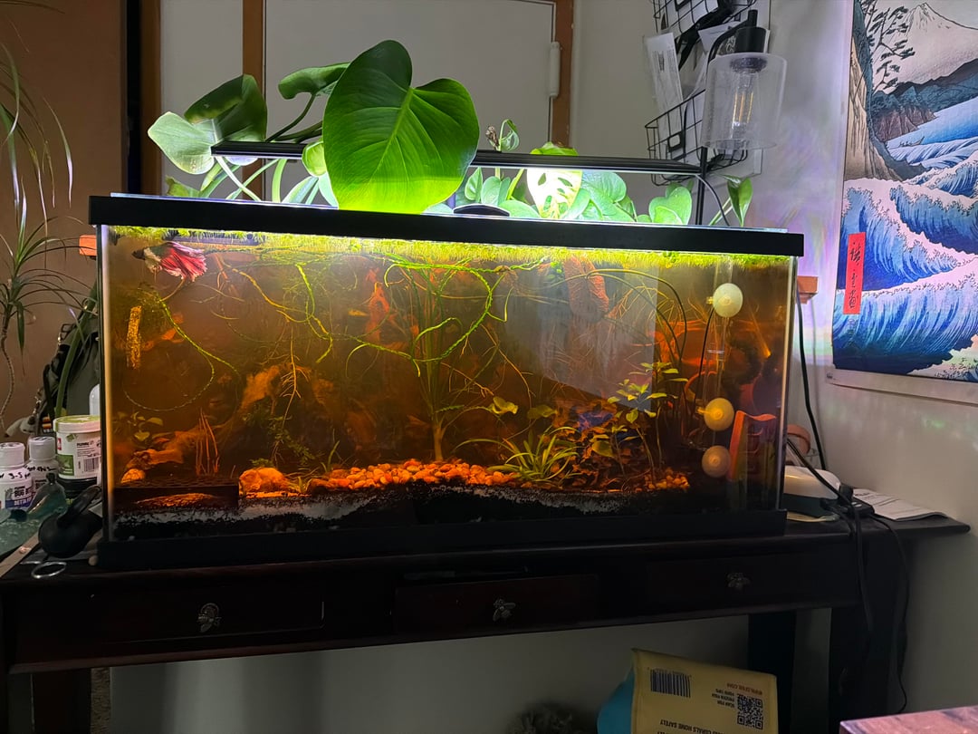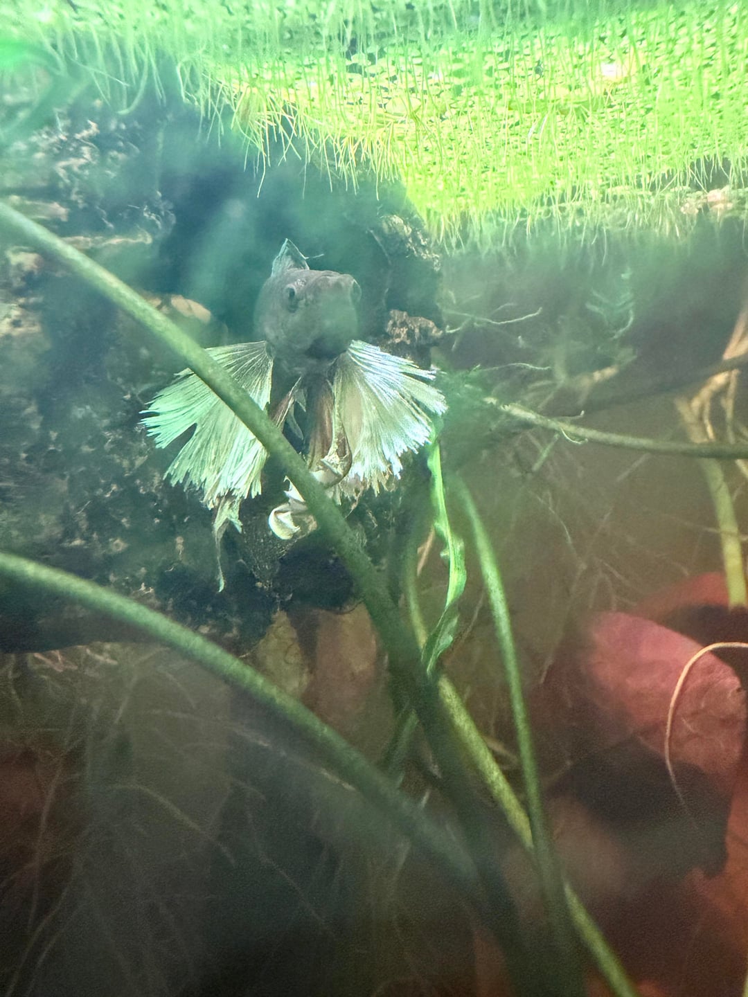 i just wanted to make this post to warn other fish keepers on here. DO NOT use the cholla wood shrimp hides with your betta fish. i should’ve known better but didn’t even think that my boy could fit into the center, but i was wrong. today when i went to visit my Falkor i saw what i thought was his ripped fin stuck to the wood but upon closer examination and not seeing him, i found him wedged in the cholla wood and he is gone. after my near panic attack i buried him in my monstera pot and performed a WC; i wanted to come and share my experience to prevent this from happening to others. to say i am devastated would be an understatement. i didn’t even get a full year with my boy. he was such a little Dodo but a sweatheart. he got along great with his other tank mates and would always be in his corner watching and waiting for me. please enjoy pictures of my baby Falkor as i never posted on here to show him until now :/