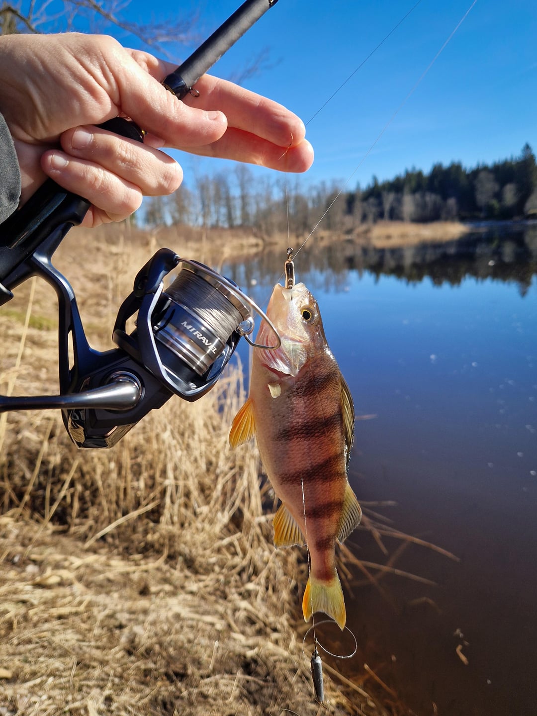 Went out for two days, both days i caught only one perch, at least i did not end up with a zero 😀 Ice just went, a bit on the banks still.