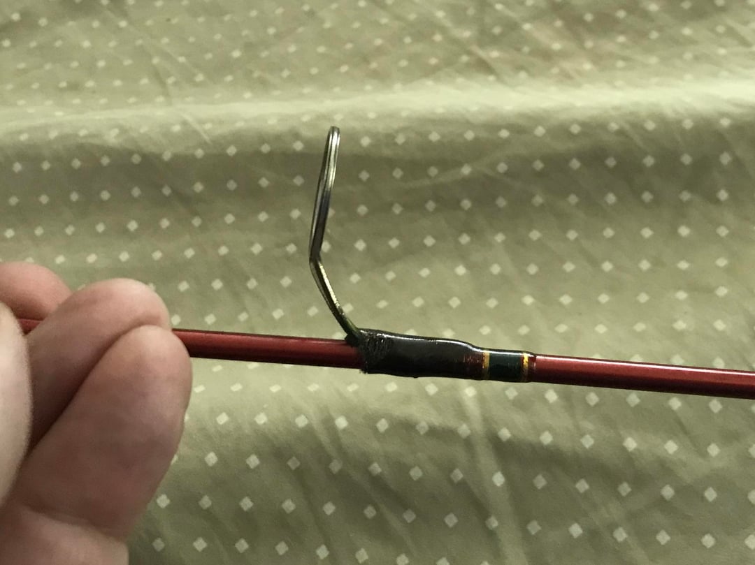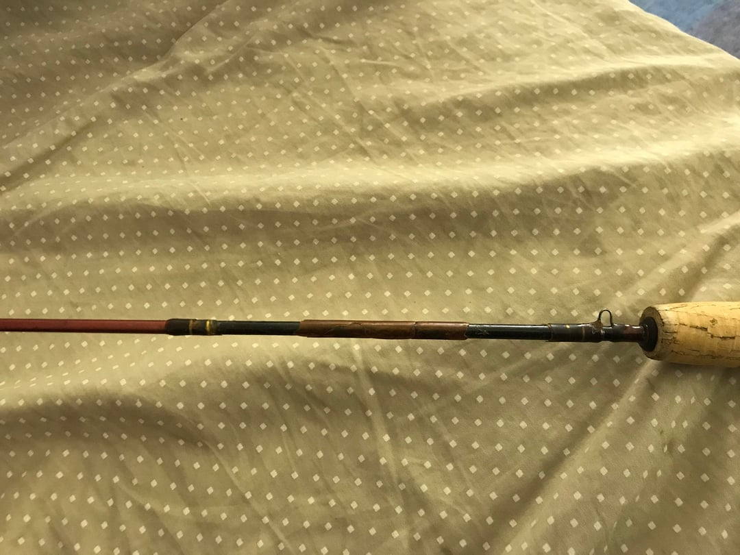 The second is 4’6” and the area where the manufacturer would have been has disintegrated. It has a cork handle and is well built, with the exception of the area just forward of the reel seat, which seems to have dry-rotted. But there’s no other identifying information on it. I got this one at a thrift store, so I have no idea where it might have been sold originally.