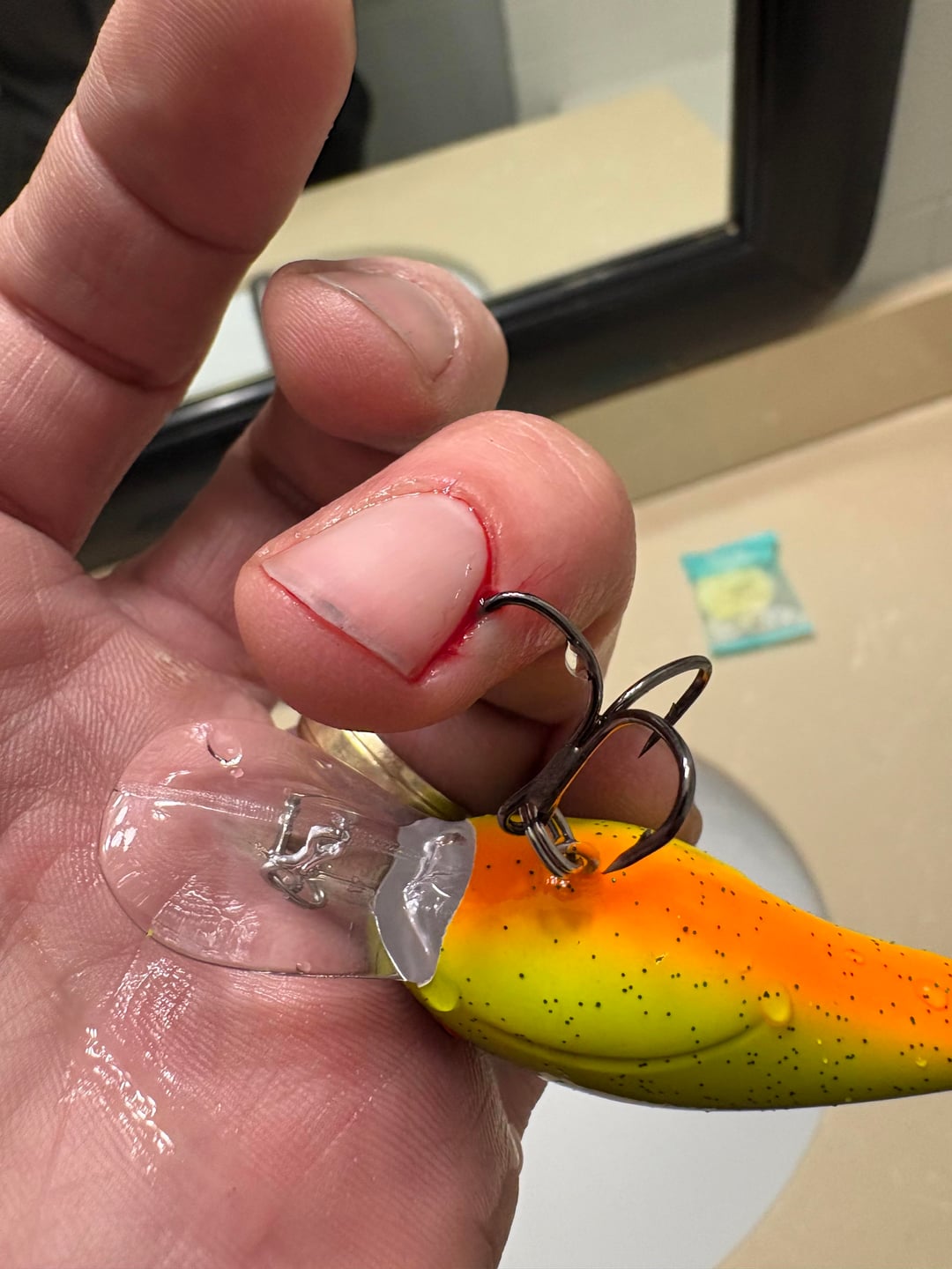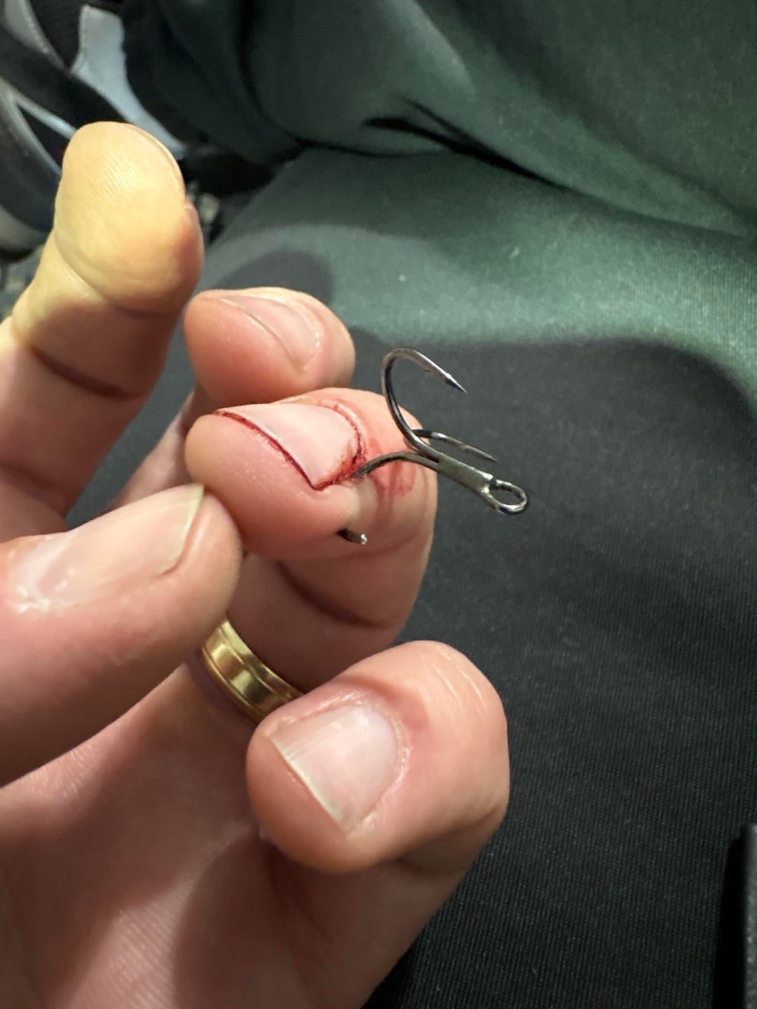 Did you drive home after fishing to perform amateur surgery? Why not just cut it at the lake and head to the ER?