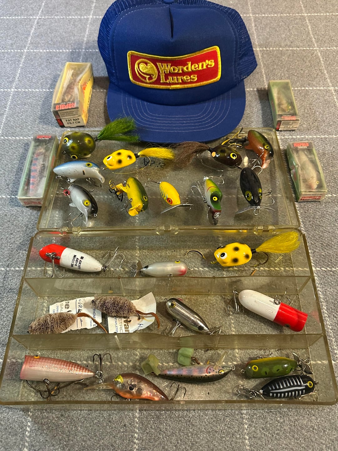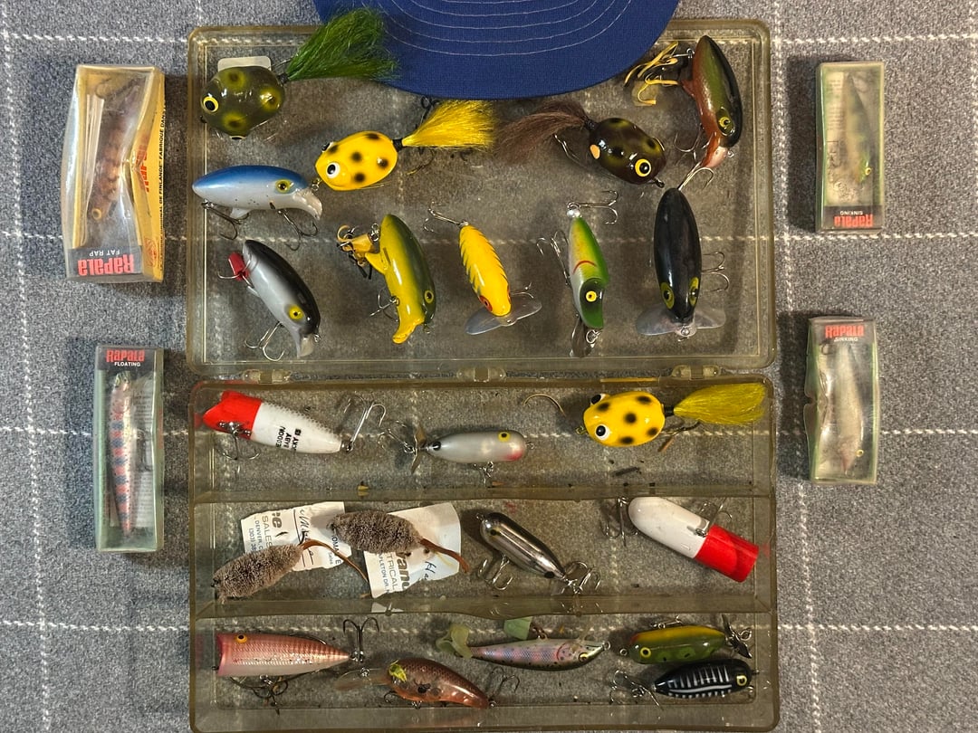 A lifetime of tackle found at a Goodwill a while back. I know someone had to have passed bc this collection isn’t something any of us would give up willingly. Top water bass fishing is my favorite so this box was definitely exciting to find. There is quite a bit more tackle but these are definitely the highlight. He was obviously a collector! He had his users & he had these- most of which may have never touched water. Some have glass eyes, made of wood, some have Japanese steel. I have other things going on in the background but from the research I’ve done so far I think some of these go back to the 40s? Feel free to share any information. Thanks!