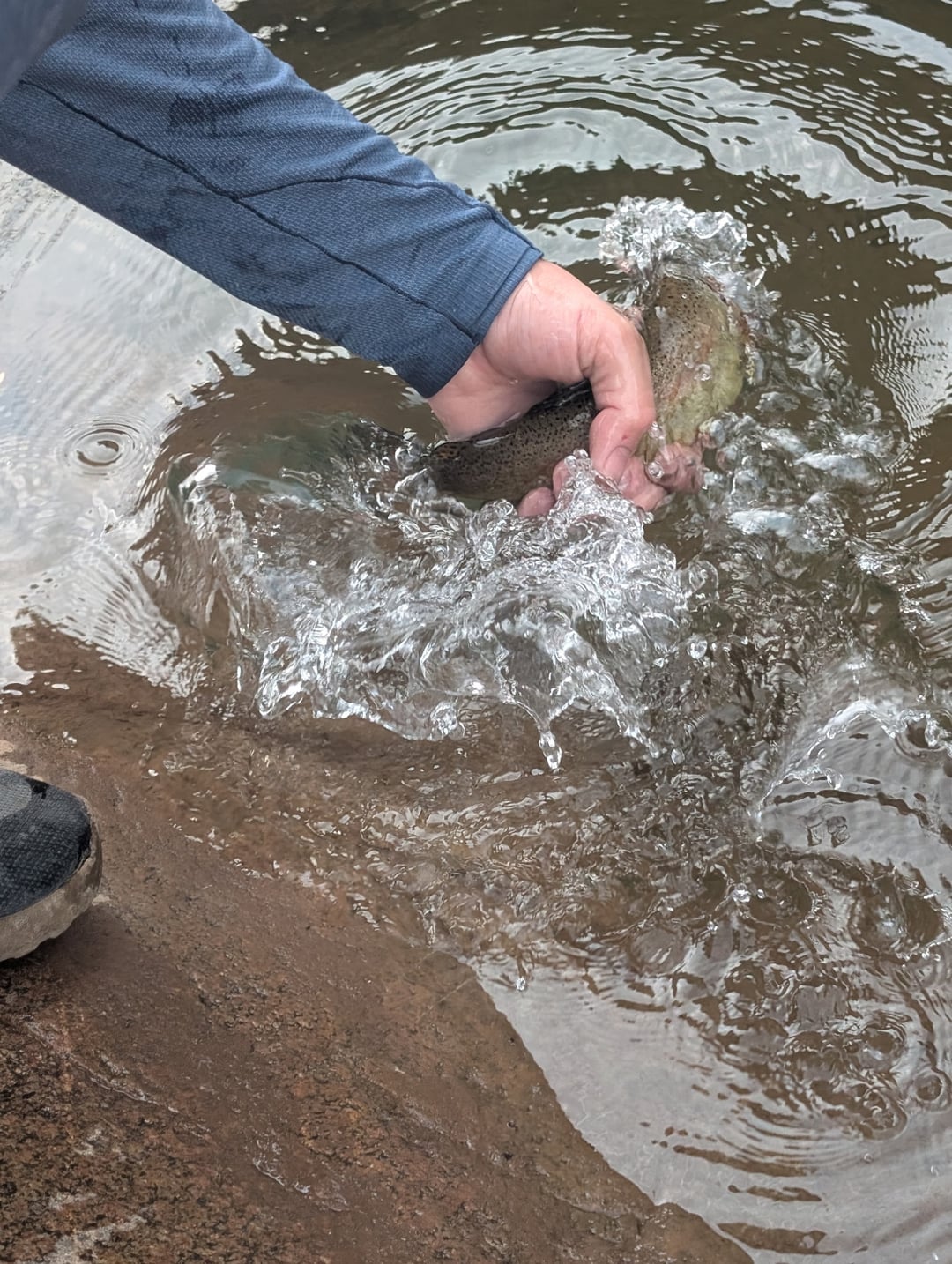 My hands were wet and I handled them as little as possible just to get the barbless hooks and a photo.