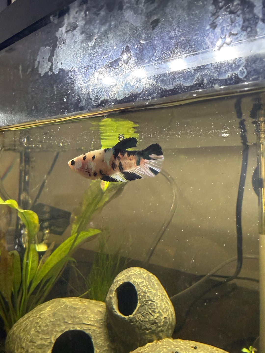 hi ! meet Kova ! my koi betta fish who reminds me of a zebra lol. this is my first time owning a fish and i want to make sure my girl is thriving ! i started my tank about 1.5 months ago and got my betta 2 or 3 weeks ago.