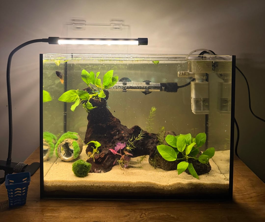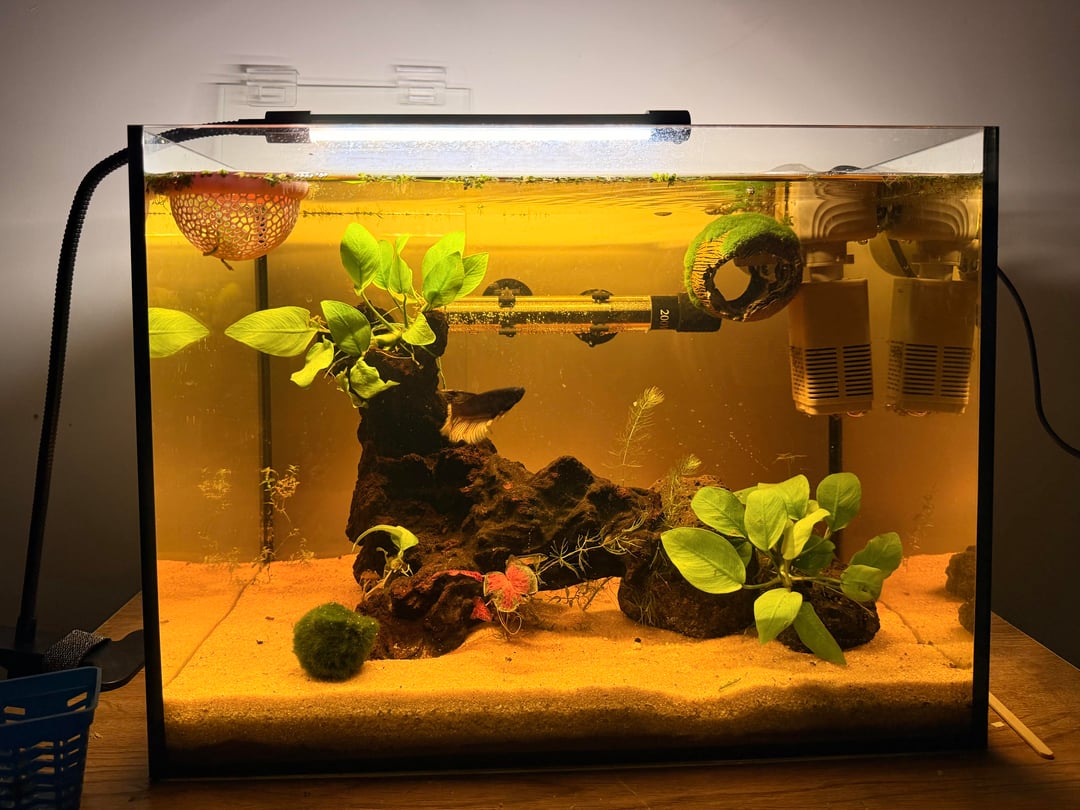 I was thinking of adding more plants but my boy really loves to swim around so I’m worried adding more plants would actually not be best option for him? I will add plants on top of my aquarium (lucky bamboos and hypoestes) i also wanted more floaters (frogbit and water lettuce) but i can’t find any place that sells them in my city, or even delivers them to me 🙁 so i’m stuck with only duckweed