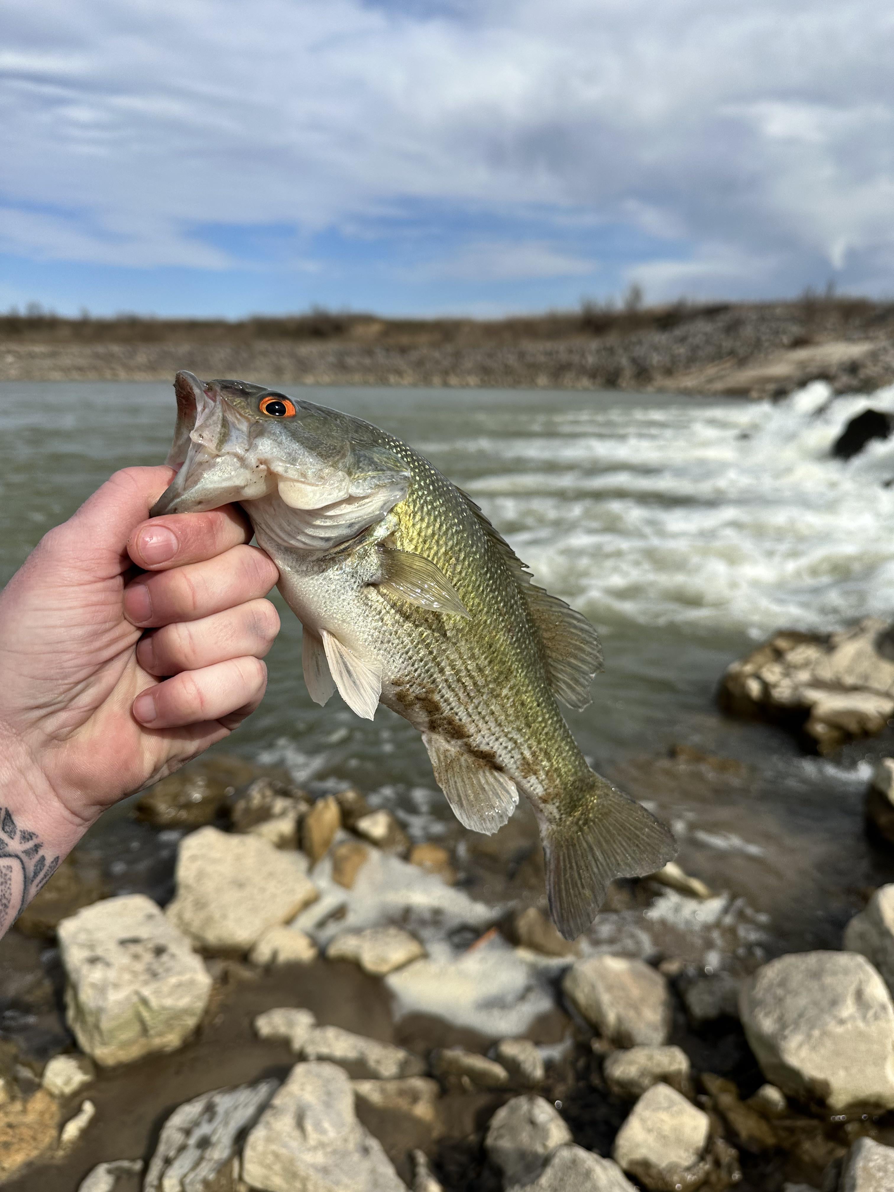 Caught in Southeast, MO. I’m assuming it’s a largemouth but I’ve never seen one with red eyes. Caught today 3/23/26 at about 45 degrees. Any ideas?