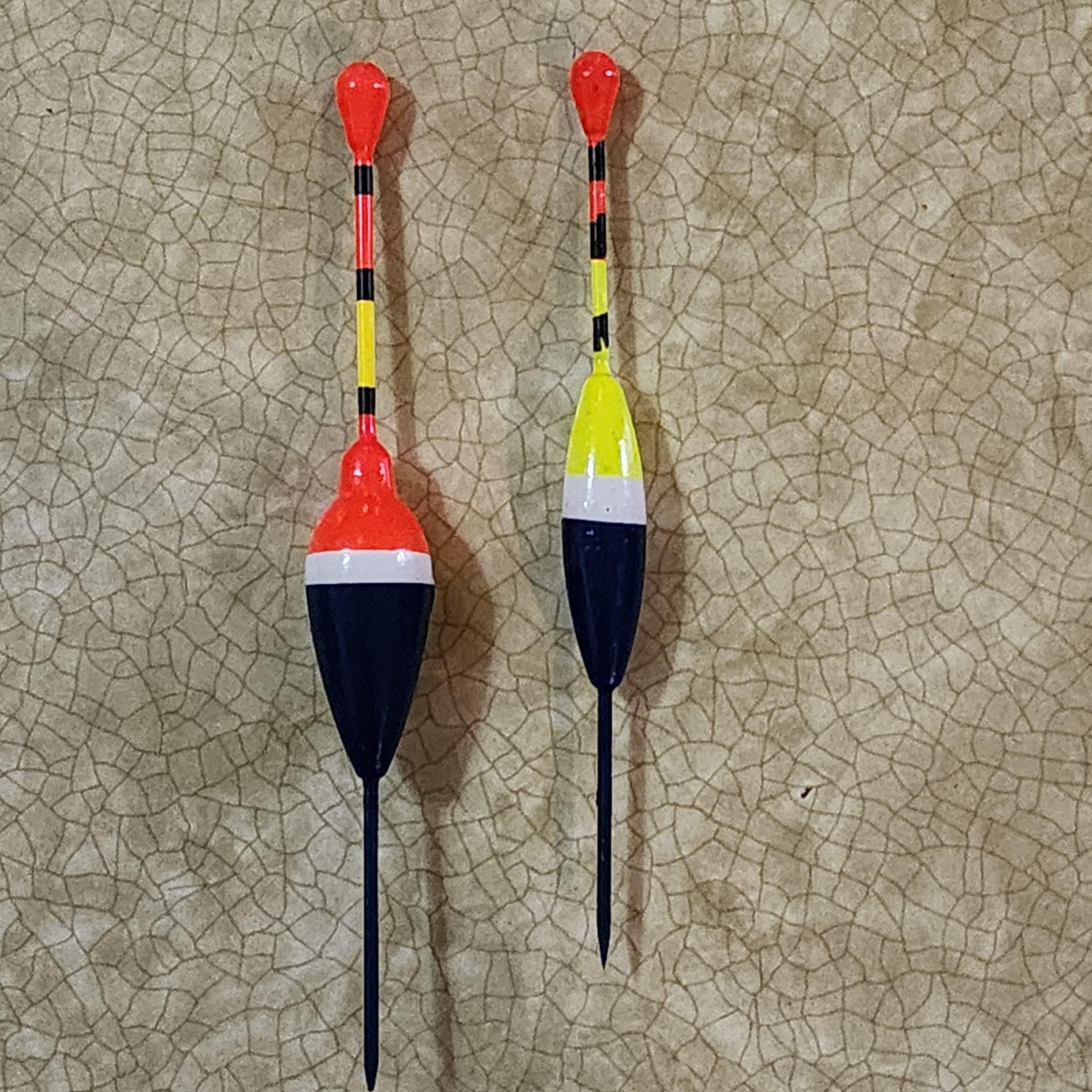 2. Those are jig floats; normally come with some little rubber/silicon bands or ties. You run the line along the side and basically tie or cinch it to the float. Keeps your rig at a fixed depth while offering good for movement.