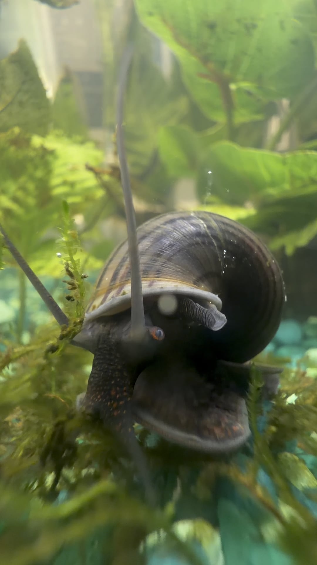 (also he is a black mystery snail, not a nerite! mystery snails have a more dramatic curvature on their shells while nerites have flatter shells.. among other differences that I can’t be sure of but that’s a big one)