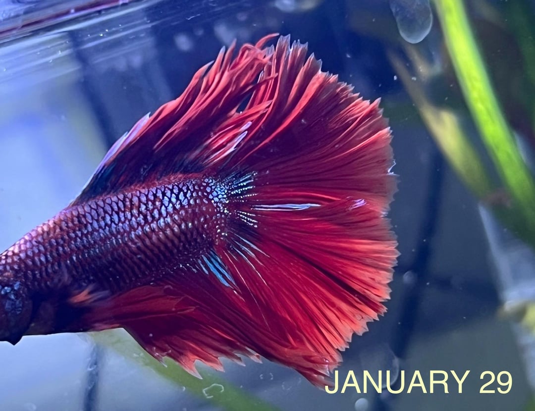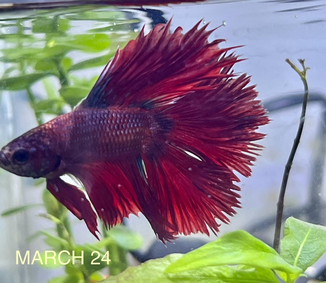 i also searched that he could be a combtail/crowntail mix if i am not mistaken. i’ve seen pictures of them that look like him now, but i am also not sure and i’m worried that it could really be fin rot or maybe he’s just changing/growing :’) i love him very much and would appreciate any kind answers! thank you 🙂