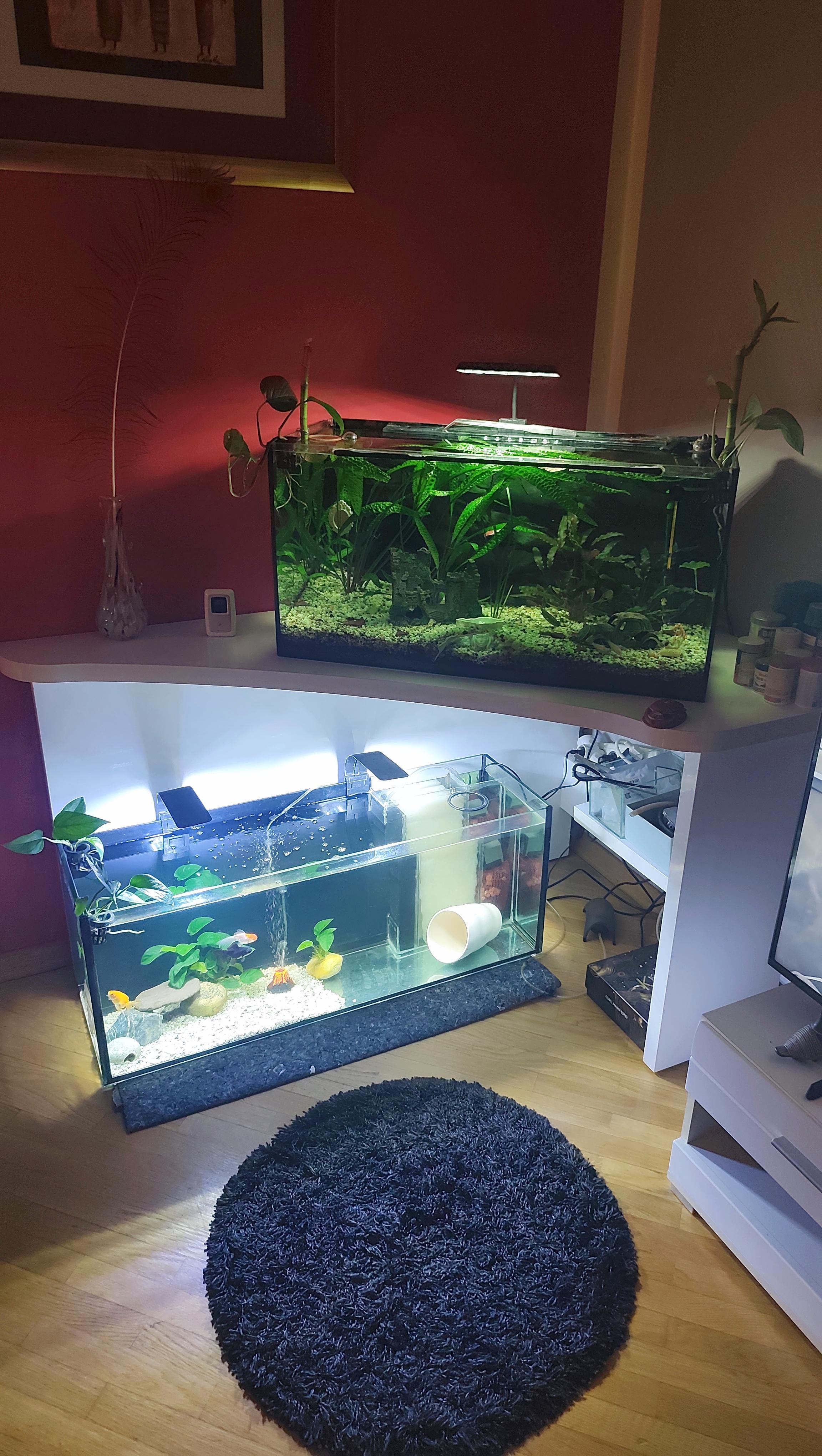 I'm still sokaing some nice driftwood for both aquariums and missing some gravel in lower one but I'll sort that out soon Posted by GurBusy1038