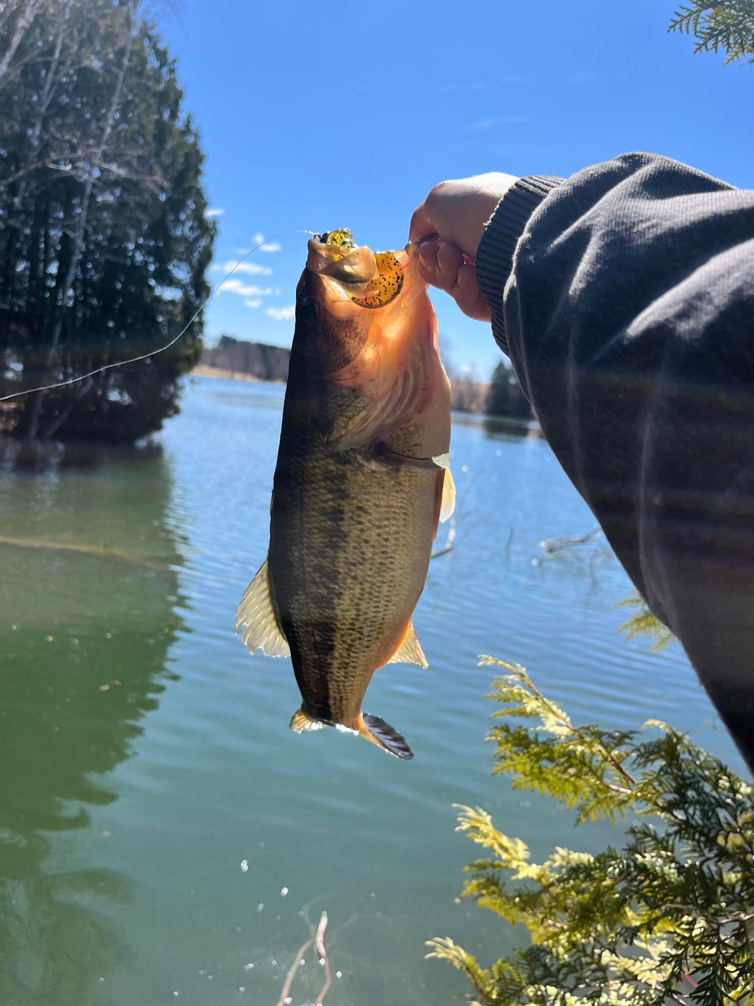 Mix of 2s and 1s with the exception of my 4 pounder (not pictured, in a seperate post though). They were all caught shallow up in corners and coves. Was a sunny 40 degree day, used a ned rig with a ZMan Trickshotz then I bounced it right off the bottom along the bank.