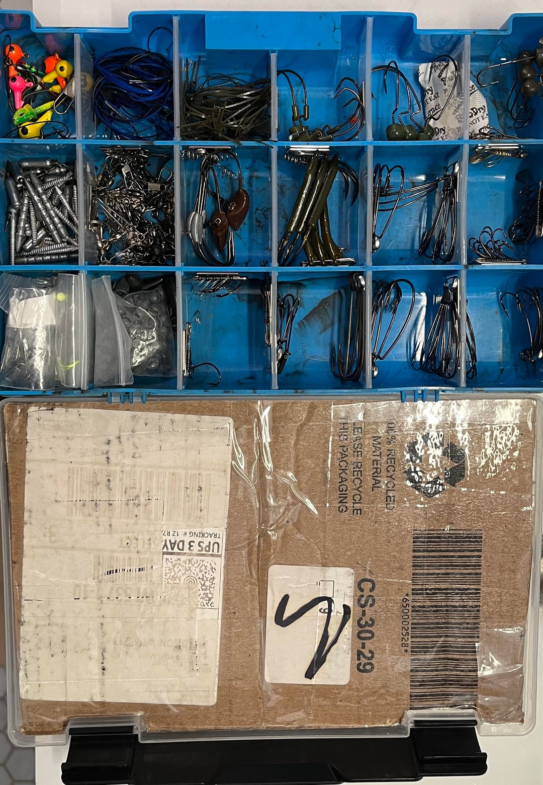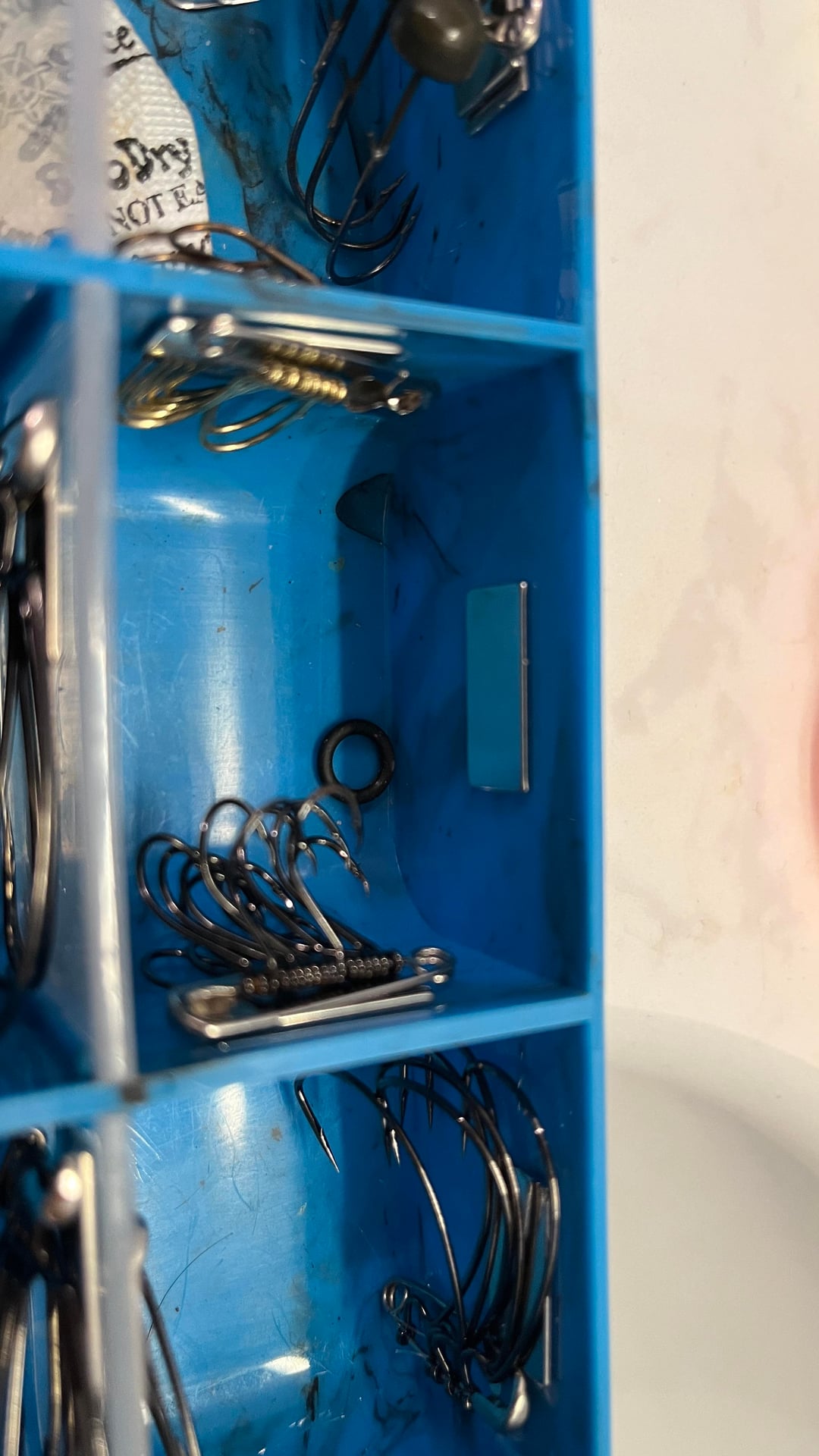 My terminal tackle box takes up one of those four boxes. It's an Evolution "one hand open" box, but nothing special beyond that. My boxes stand vertical on their spines when in the kayak crate, and I was getting annoyed at how often hooks were getting tangled, swivels floating from compartment to compartment, etc. I made some mods to my box. Sharing here in case it is helpful for anyone (pics in order of steps below):