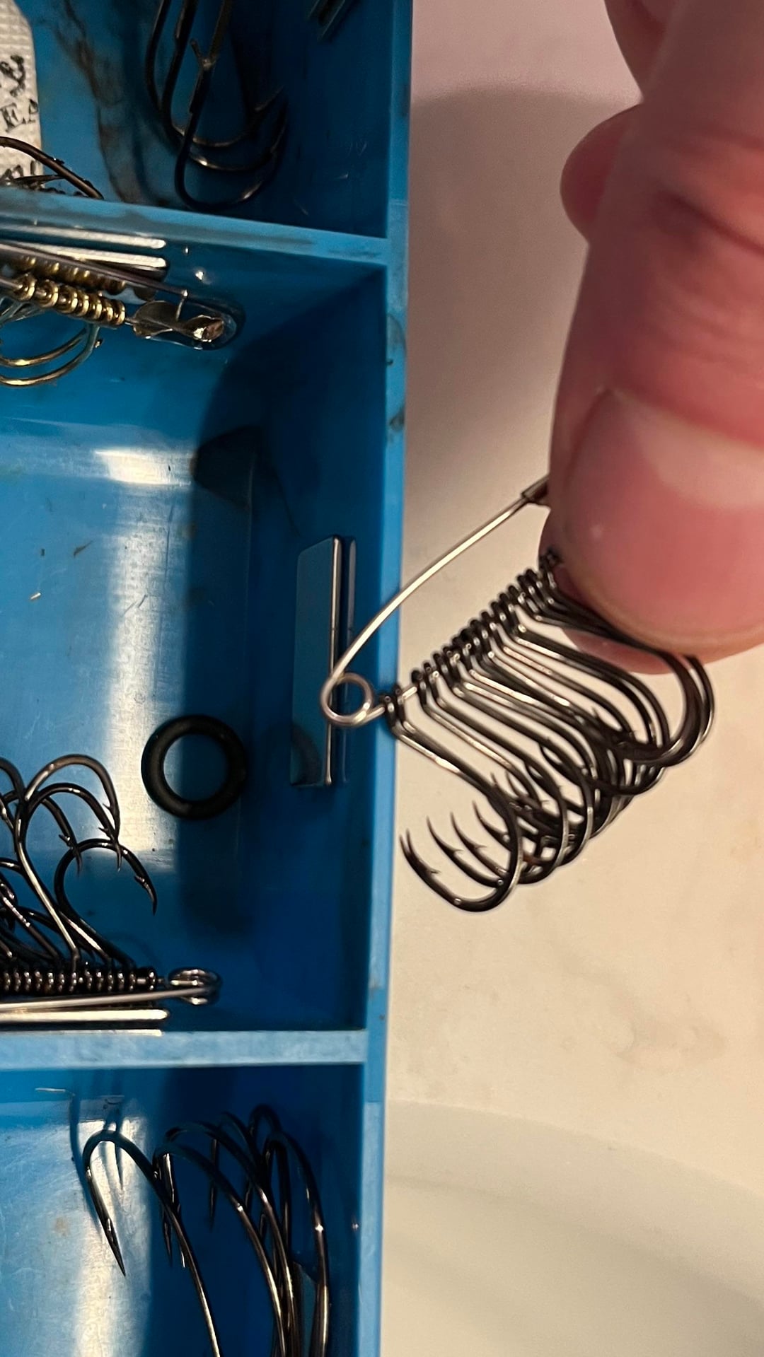2) I put most of my hooks on safety pins so they all face the same direction and are contained.