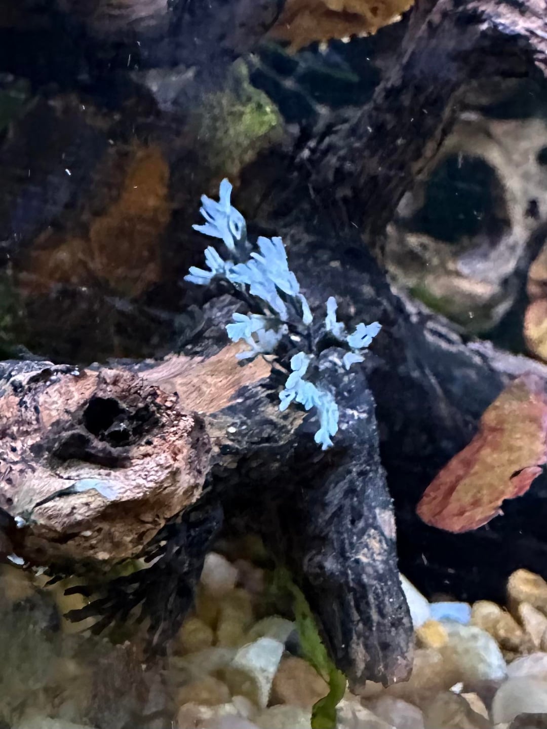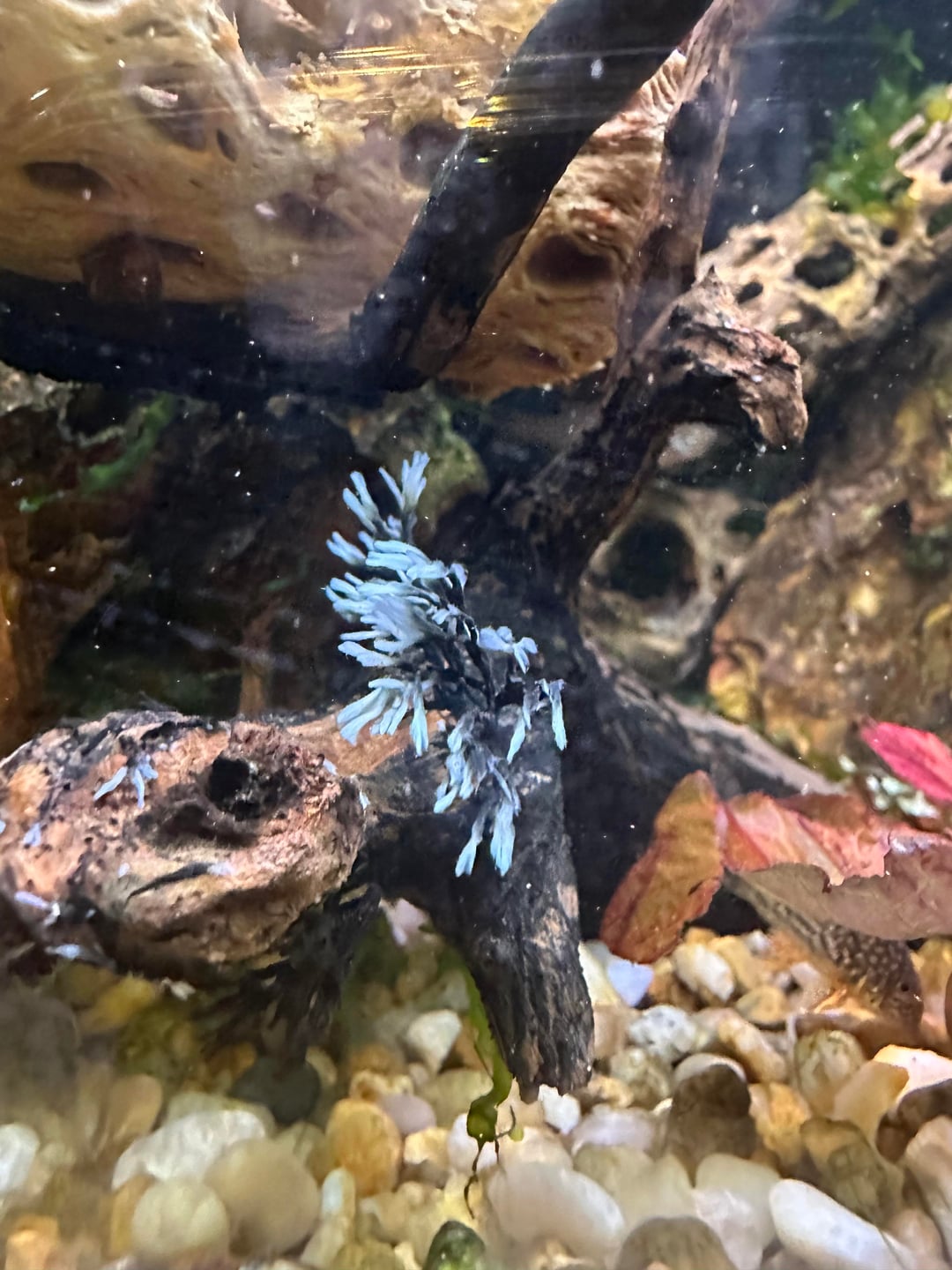This has been growing on my drift wood. I rubbed it off a week or so ago and now it is coming back. Any ideas of what it is? I checked AI but didn't get an ID. I do notice that the shrimp and other fish don't really mess with it. Would welcome any insights. Thanks!
