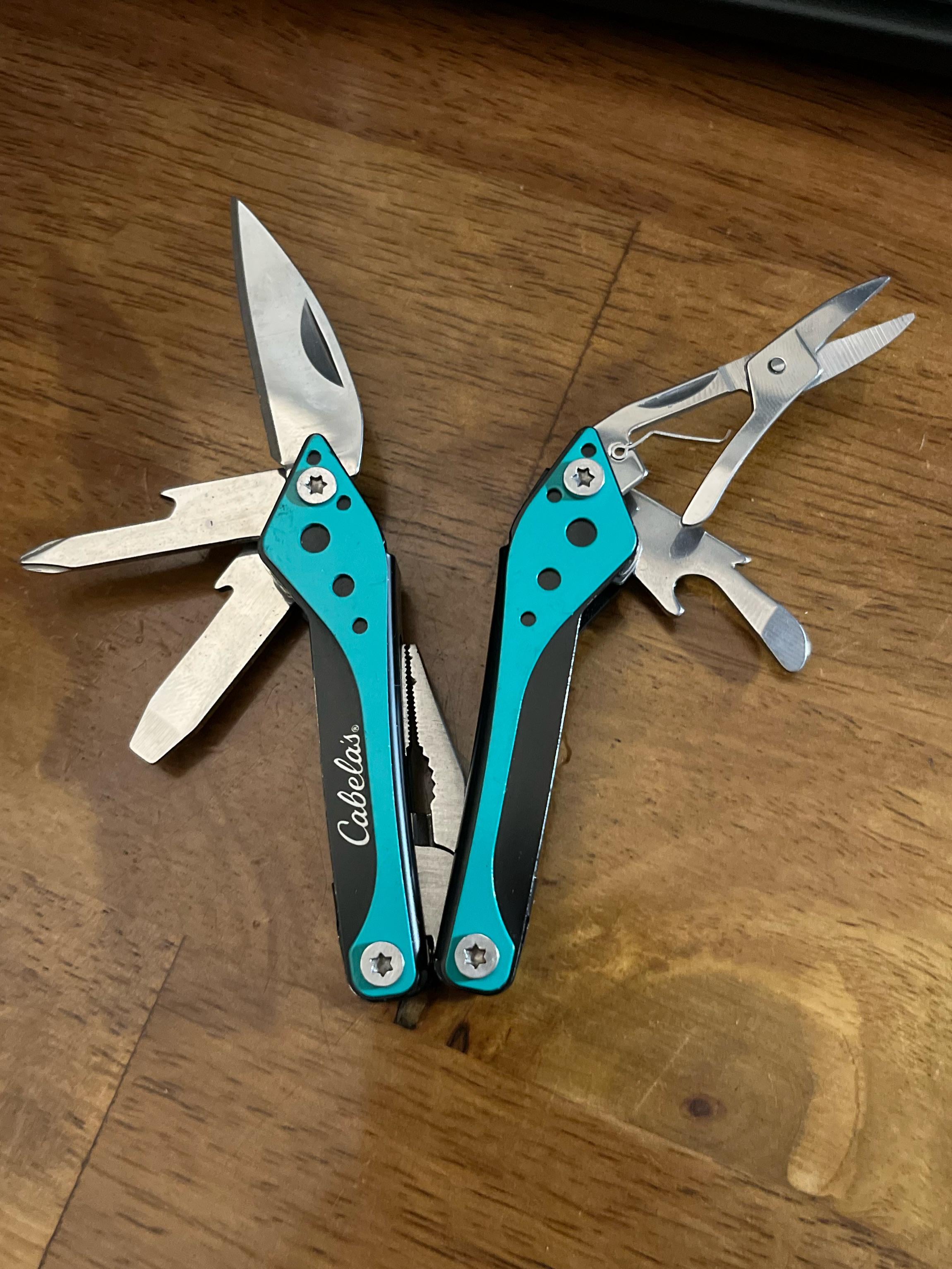 I don’t see a single can opener. The thing on the right below the scissors is a bottle opener. The rest of the little notches are just nail nicks to pull the tool out