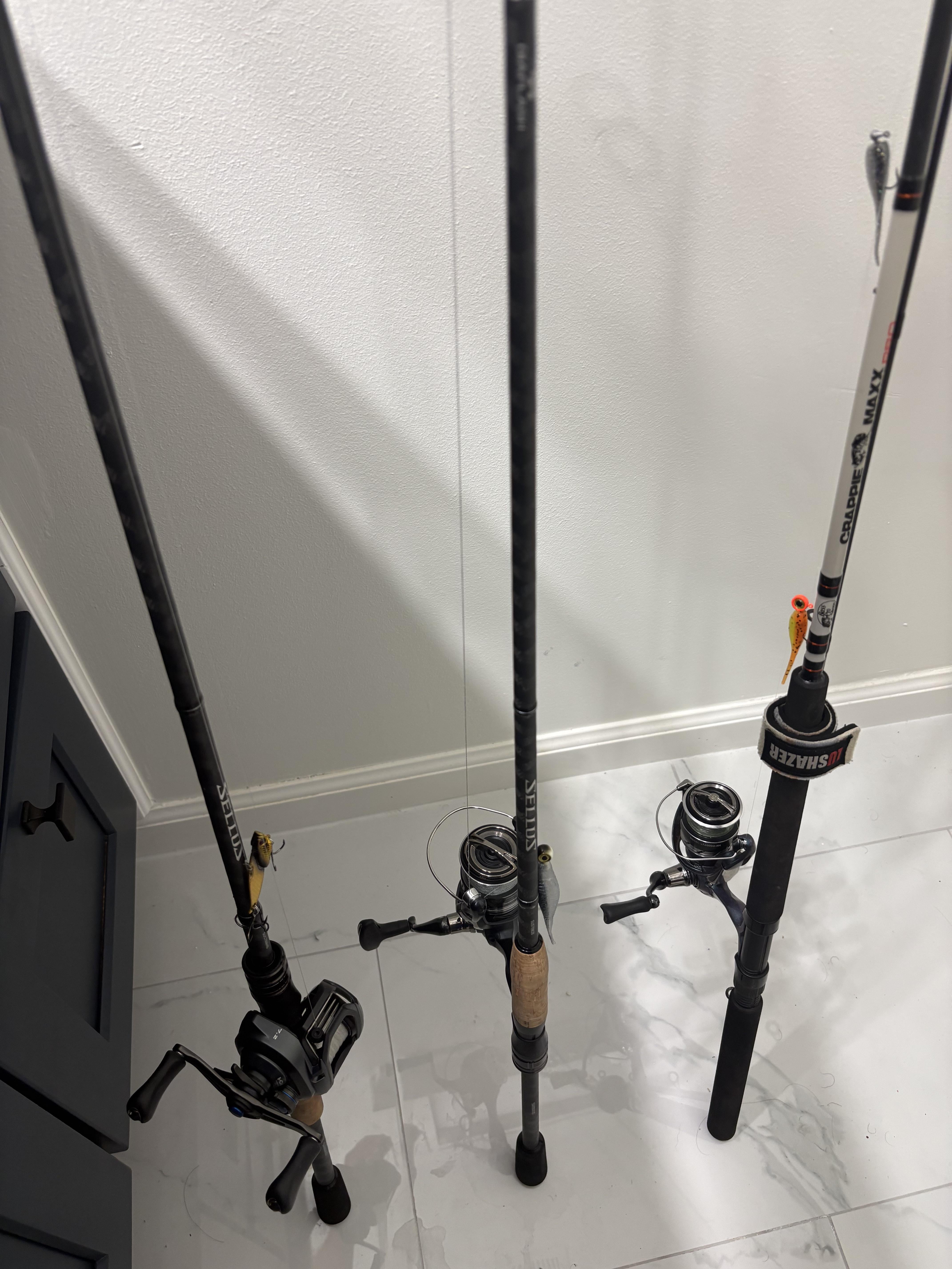 Oh and if it helps I run 15lb braid with 12lb fluoro leader for my bass rods, and 4lb braid with 4lb fluoro leader for crappie rod