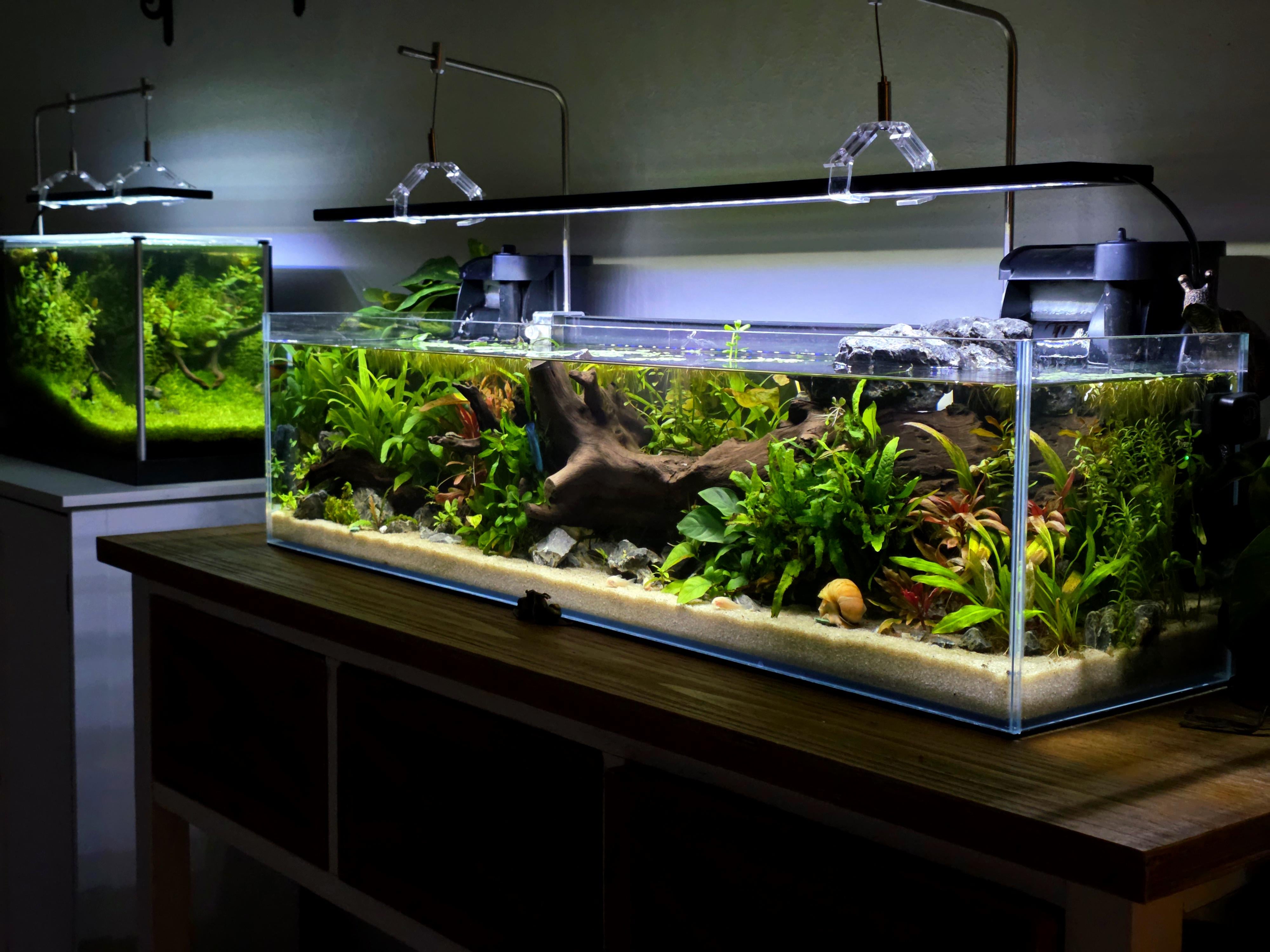 Picture of two of my 5 Betta tanks that I have. A 5 gallon fluval spec and a Fzone 11 gallon shallow long.