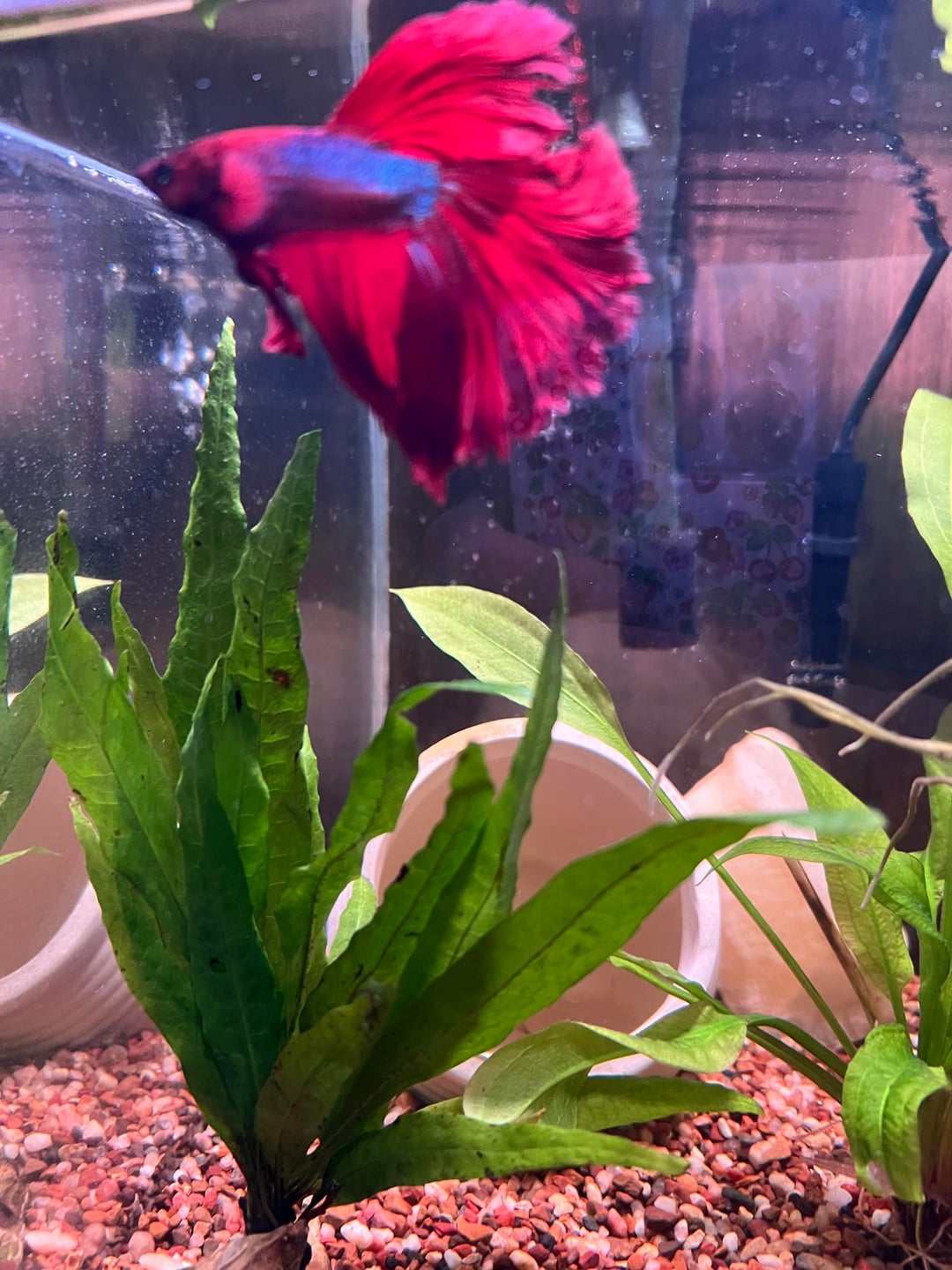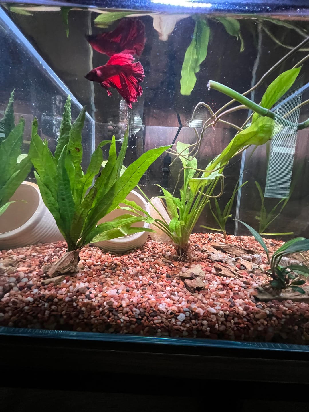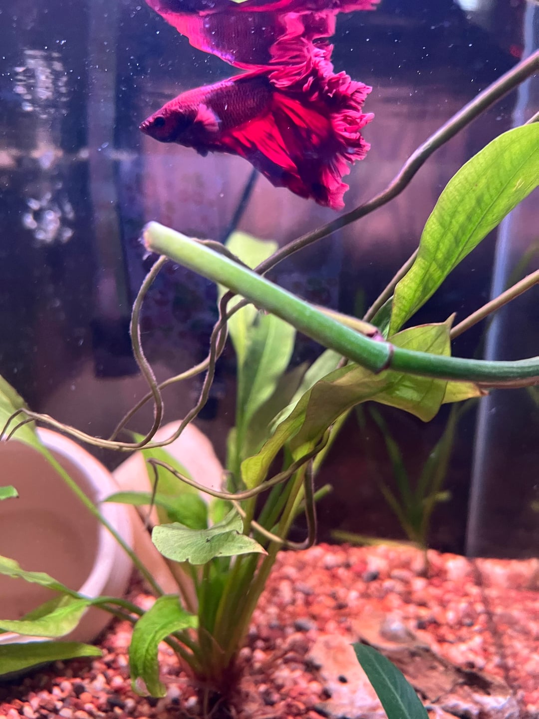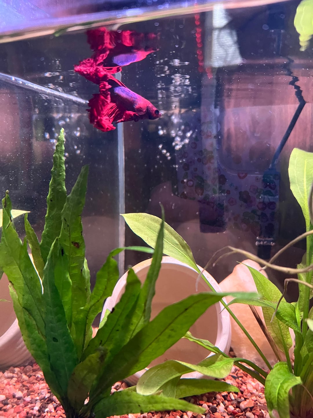no one told me it would be super hard to get a picture of him lmaoo, but i know i need more plants i just recently upgraded to a 7 gal :0