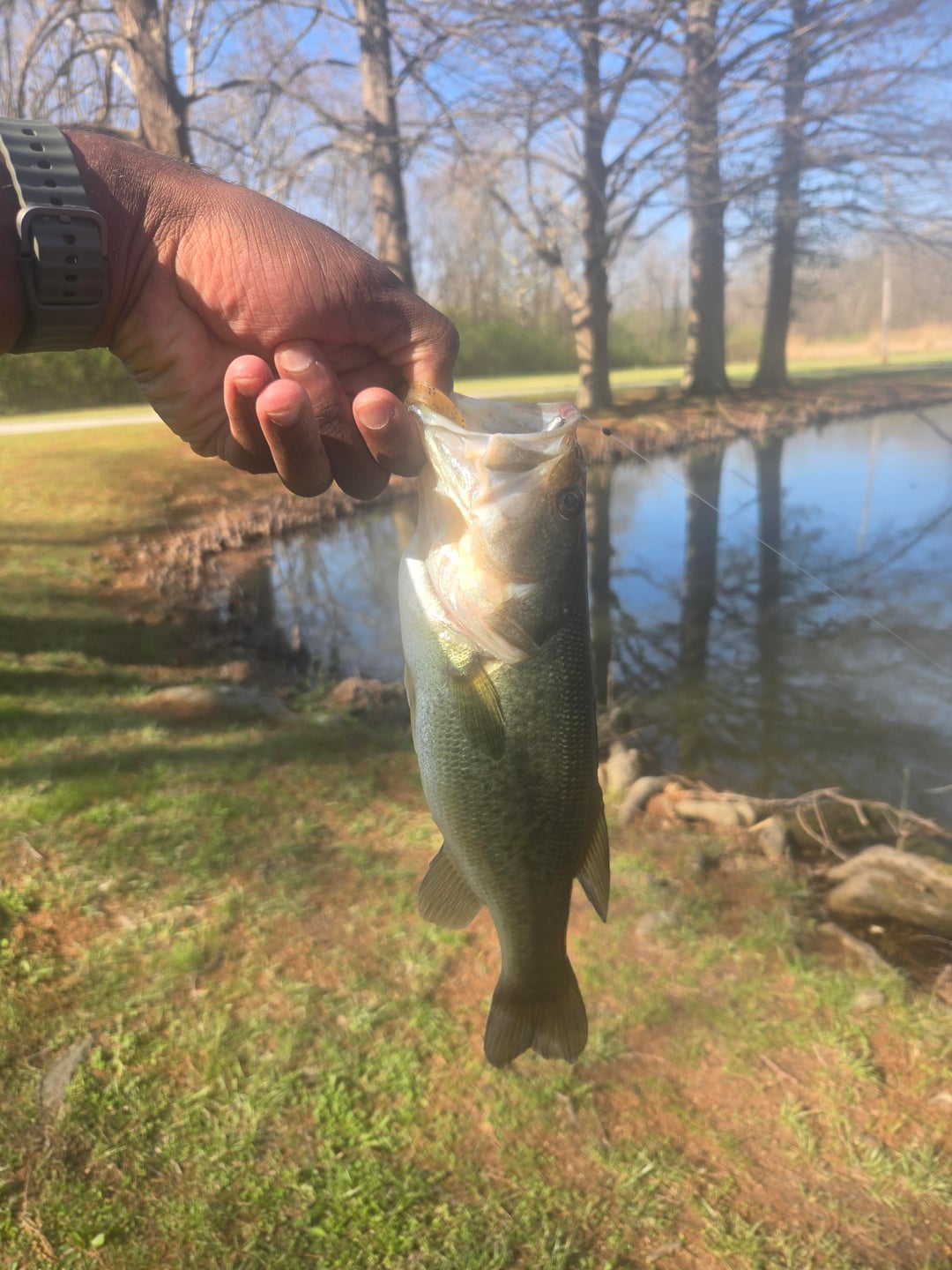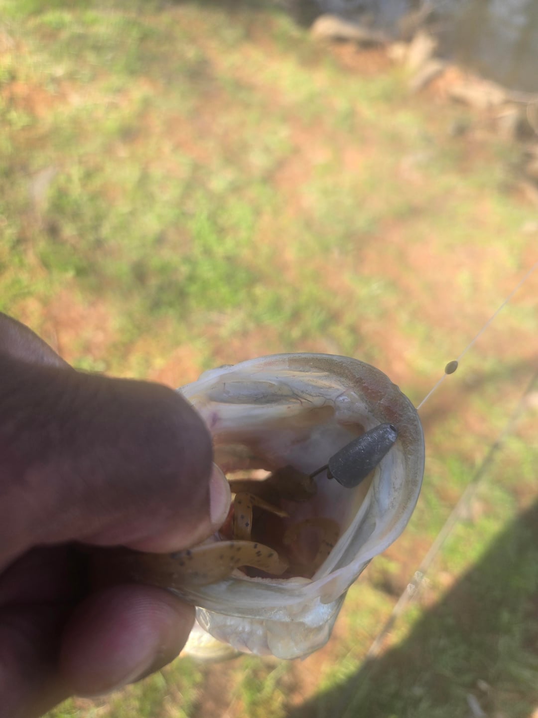 Gotta love it when you get bit on a Texas rigged lizard. This one bit a green pumpkin lizard at one of the ponds I fished today, and at a different pond I got bit on a watermelon seed lizard as well as the green pumpkin