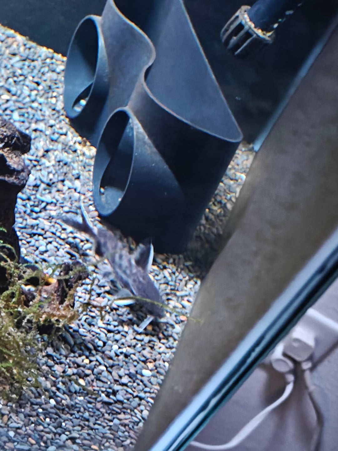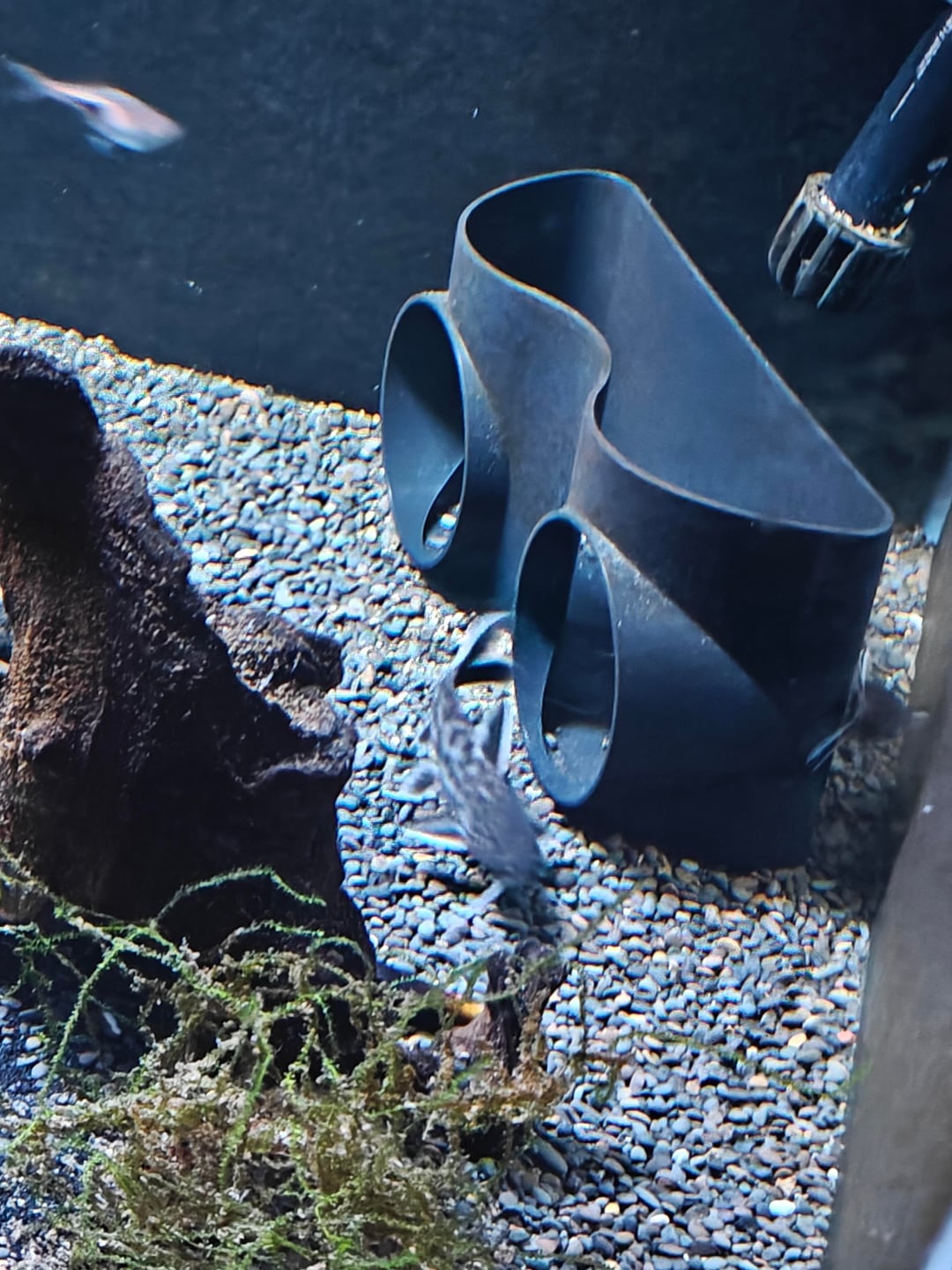Can you id this fish? My wife gave them to me, I have 6, they are some kind of catfish, grew up to 2.5 – 3 inch, they are nocturnal and hide during the day or if you get close. They swim bottom and some times climb the glass to the top middle.