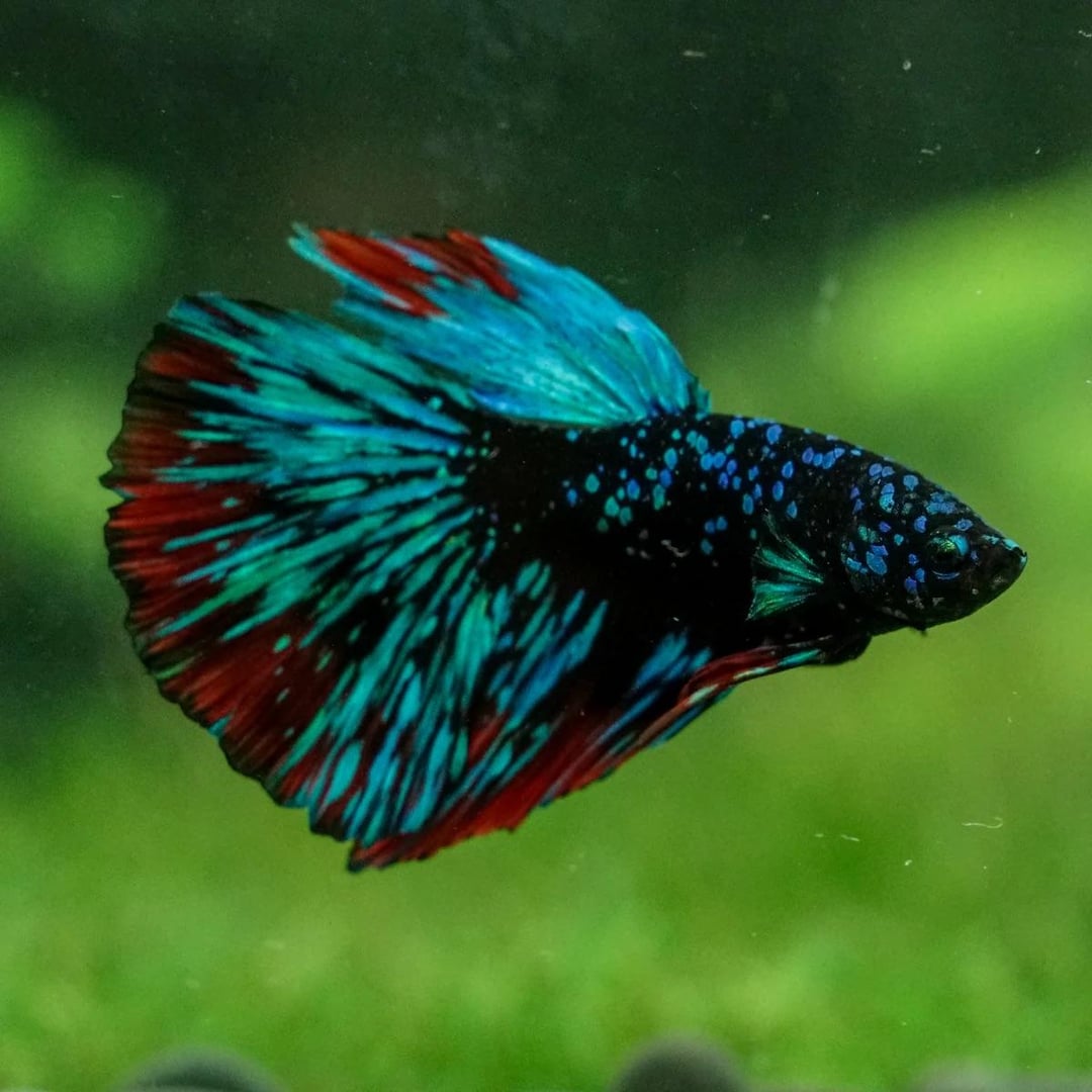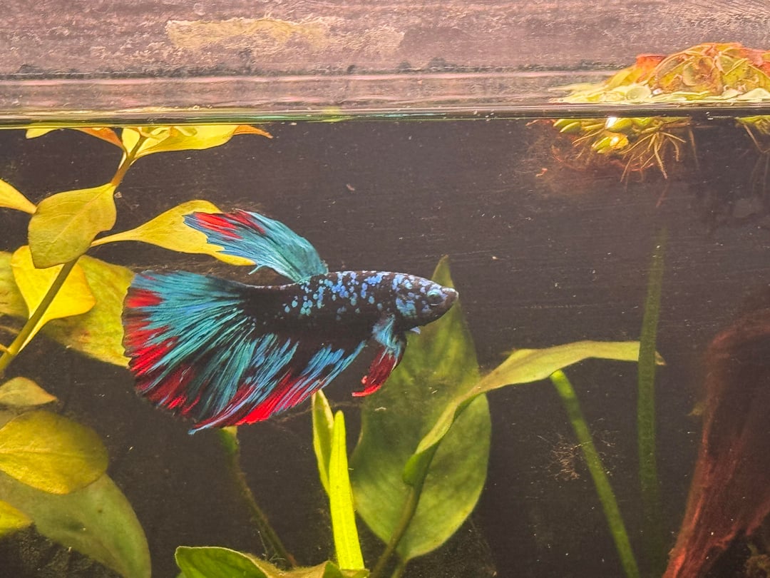 First two pics are right after adding, third one is his stock image from the folks at Betta Squad USA (thank you for the beautiful fish if you’re reading this!)