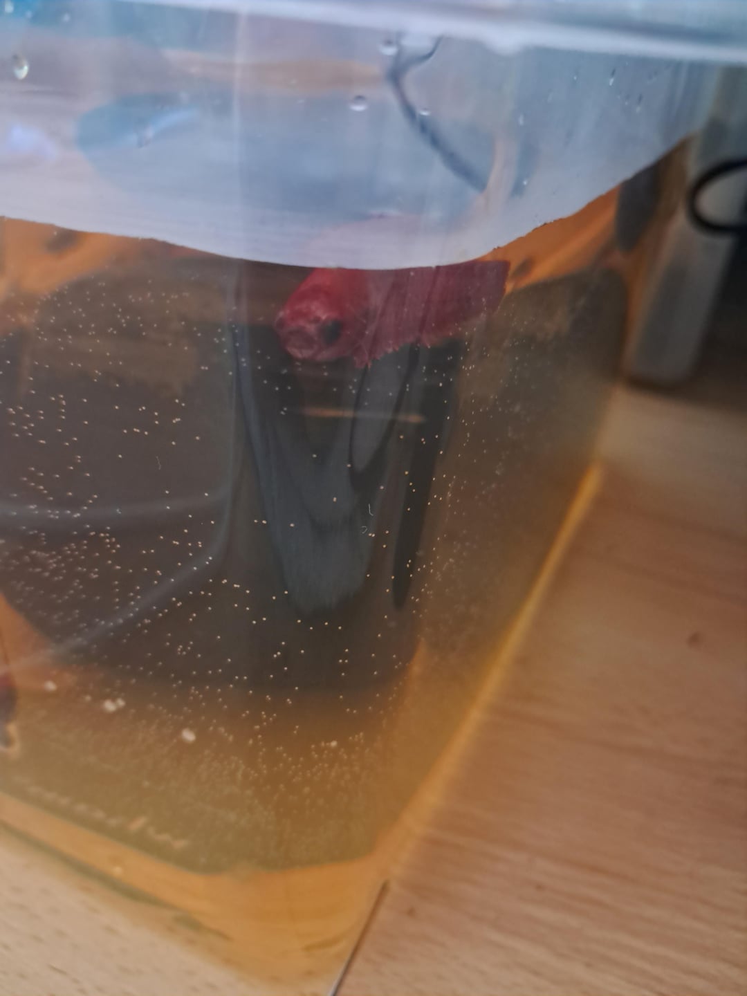 I went to a fish shop today and saw they had bettas in plastic cups. One had absolutely no fins at all, i left and bought a hospital tank and a new heater then came back and got him for free. Hes now on a long journey to recovery. I think he will make it, hes very lively despite his injuries. I've got some cool people helping me with his recovery.