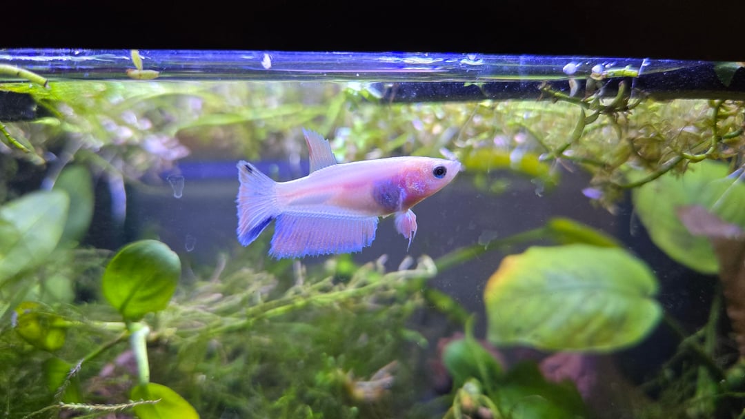 Omg she’s so pretty! She looks a lot like my betta! I’ve had her for a few months now and she’s gotten so iridescent! That little spot on her tail is so cute!