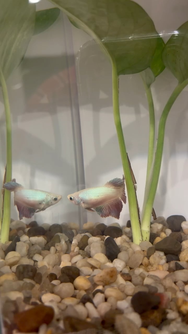 Hi all, my wife and I just got a new female half moon with our tax return (hence the middle name lol) and we had her all set up in a 5 gallon tank with some live plants, a moss ball, and a snail friend who she seems interested in but not threatened by. We are novice fish owners so weâve done a ton of research, but one thing we werenât prepared for is her flaring at her own reflection in the sides of her tank. Earlier in the day when the LEDs were on and it was super reflector she was actually flaring at herself, but now even with the lights off and a little less reflective sheâs still going over to the sides and interacting with herself but she doesnât seem to be actually flaring (video included).