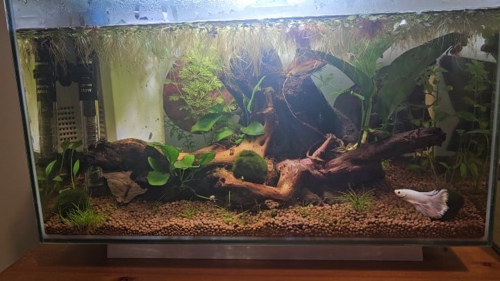 then on friday (so 3 days ago) I did a water change and suctioned the debris off the driftwood etc – I ended up taking out more water than intended, maybe close to 30%, but thought nothing of it. I added a little plant fertiliser and stress-zyme to the water, the same additives that were in the water last week when I got him.