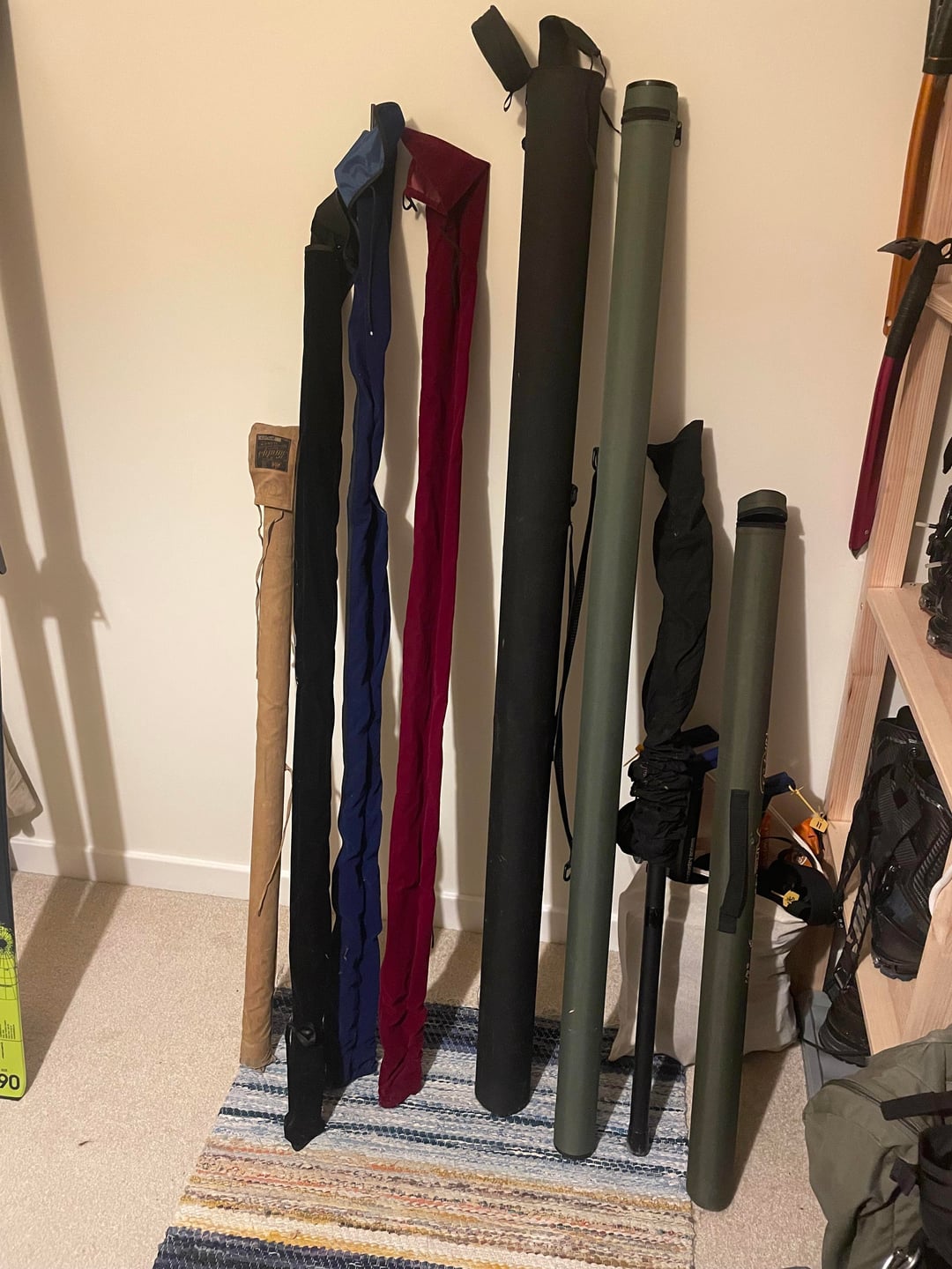 I've been left 8 rods, spanning a lifetime of fishing in how old they are (I've ID'd the more modern ones). He fished the River Tay in Scotland a lot and most rods are various weight Salmon rods – which I can put to good use on the Spey myself.