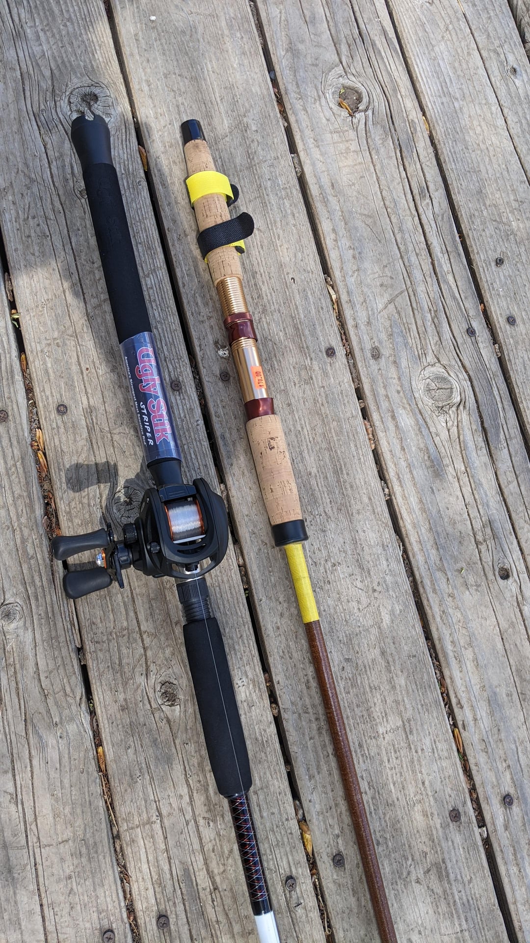 Got a rod a while ago not sure what reel goes on it.. had the baitcaster thats on the other rod for a bit while I was learning to cast them got alright and switched it over to the ugly stik striper rod I got Walmart clearance recently for $20. And casted for half hour practicing no birds nests. But the other rod in still not sure what reel to have on it. And do I need a bigger baitcaster on the ugly stik?