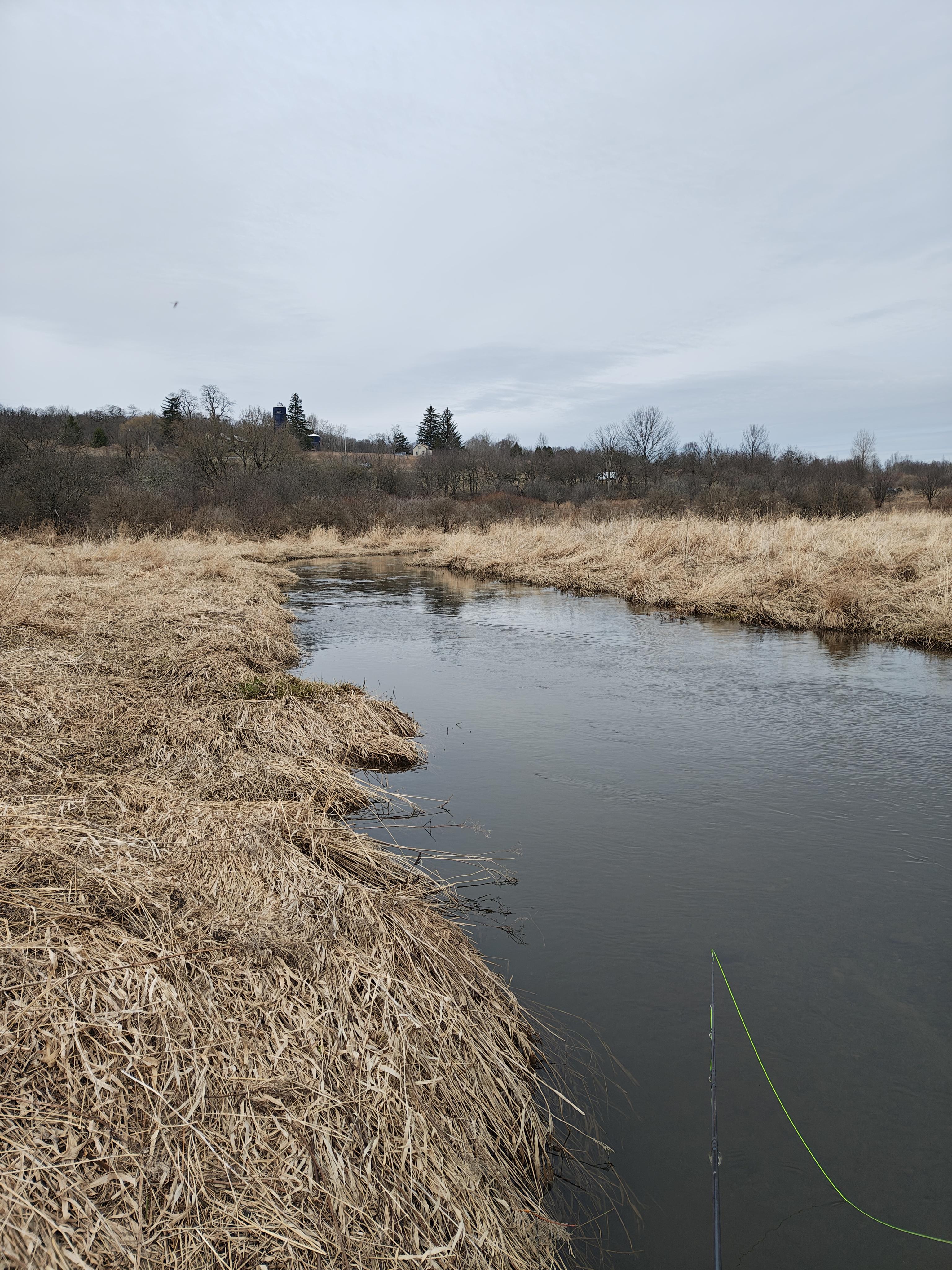 Central NY. Last couple days were below freezing, water is high because we got quite a bit of rain before it got cold. Today was mostly overcast with occasional sun peeking through. It was windy, temps mid to high 40s.
