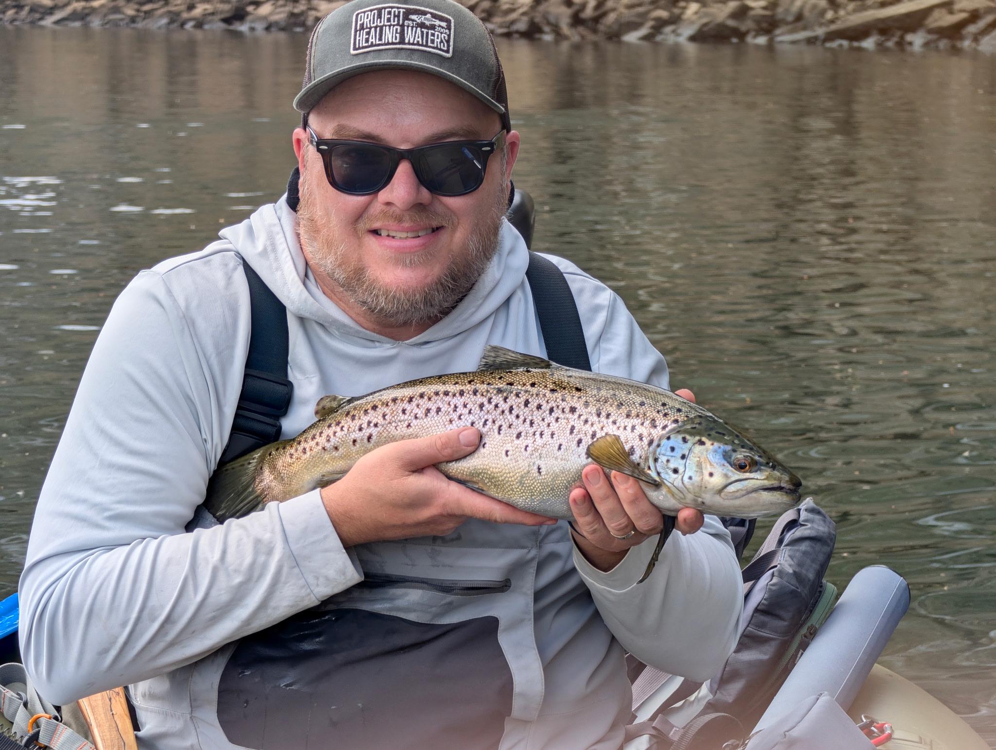 Caught this guy a few weeks back on a float down the Caney Fork. Fishing deep and about a foot off the rocks on the river side. Black ice dub Duracell fly size 18 got this guy in the net. Posted by tn_tacoma