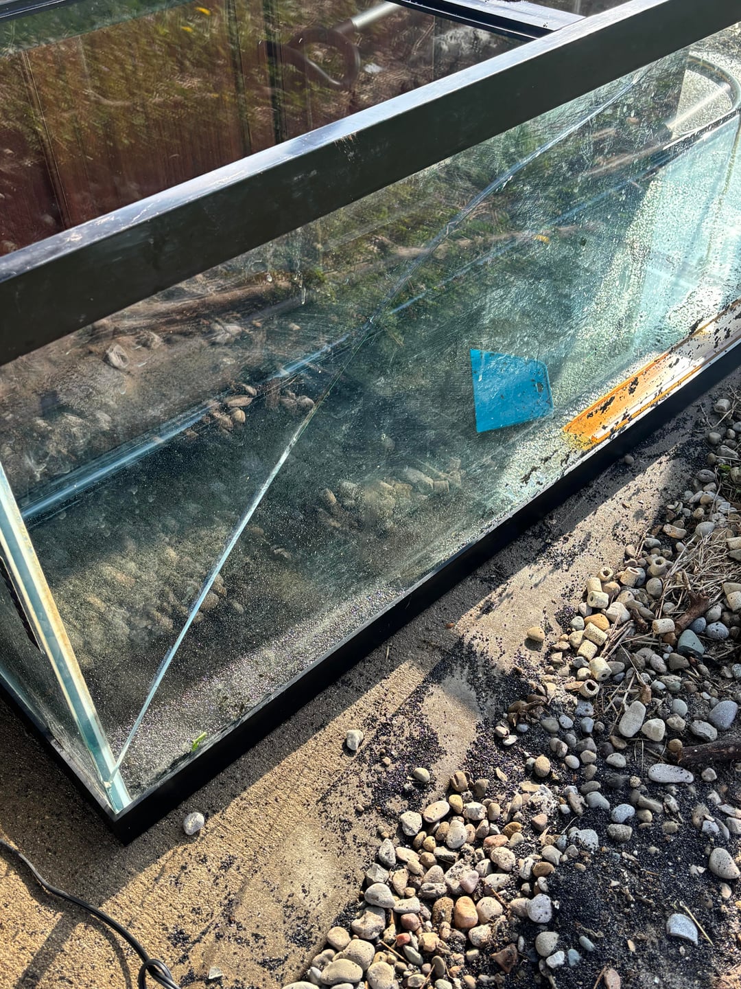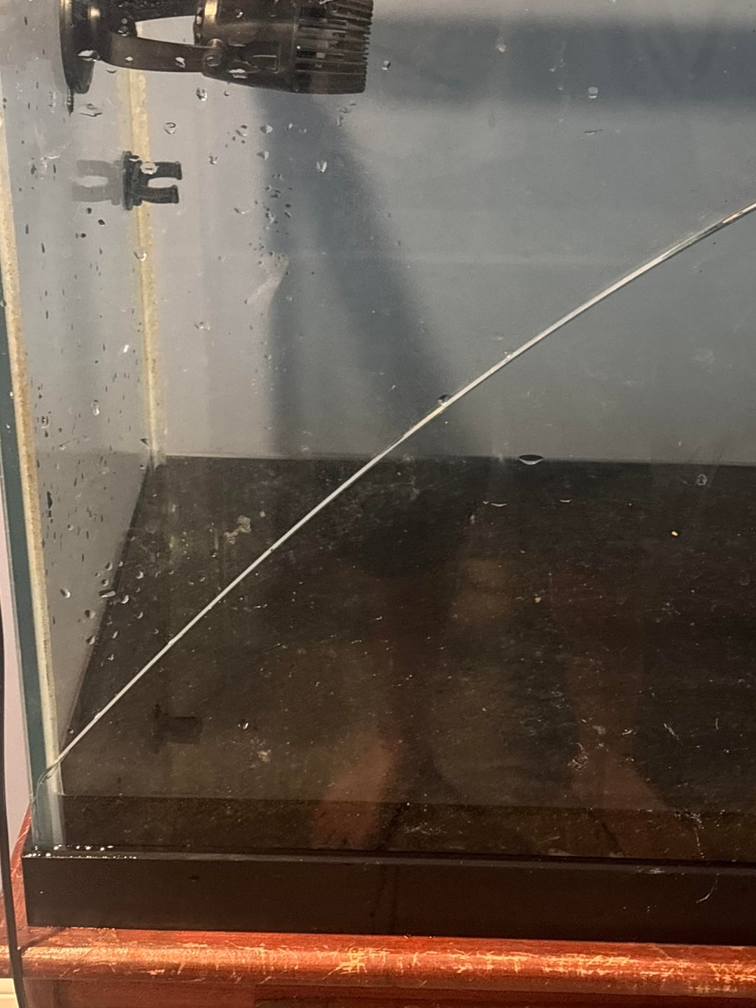 Older tanks or ones moved from Marketplace often have invisible micro cracks from handling that water pressure then exploits. The diagonal burst crack pattern is classic for this. Age weakens the glass and silicone over time too.