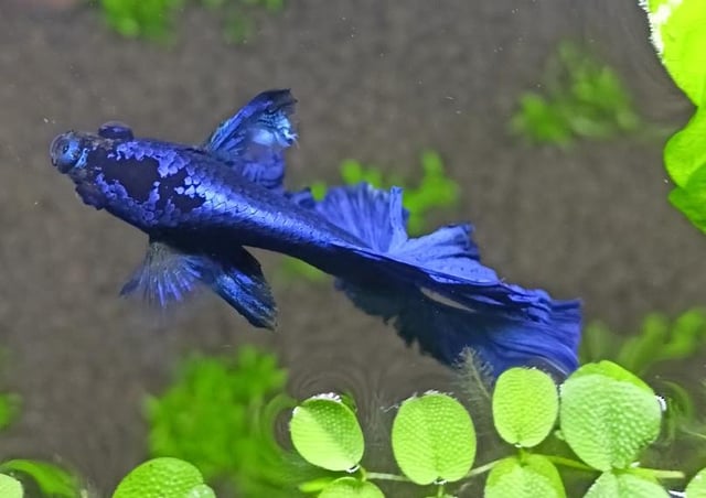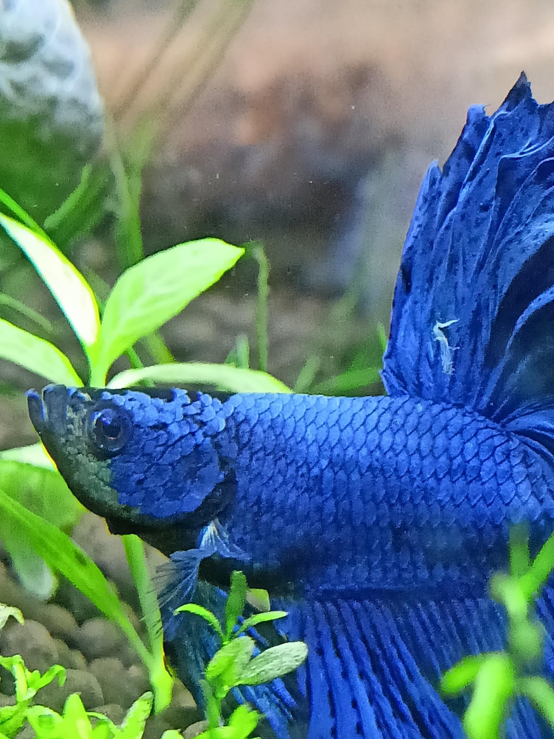 I have been feeding him 6 pellet ball food thingies everyday since I got him. He has an appetite, he swims up to me, he explores the aquarium but occasionally glass surfs. His fins have been healing and regrowing.