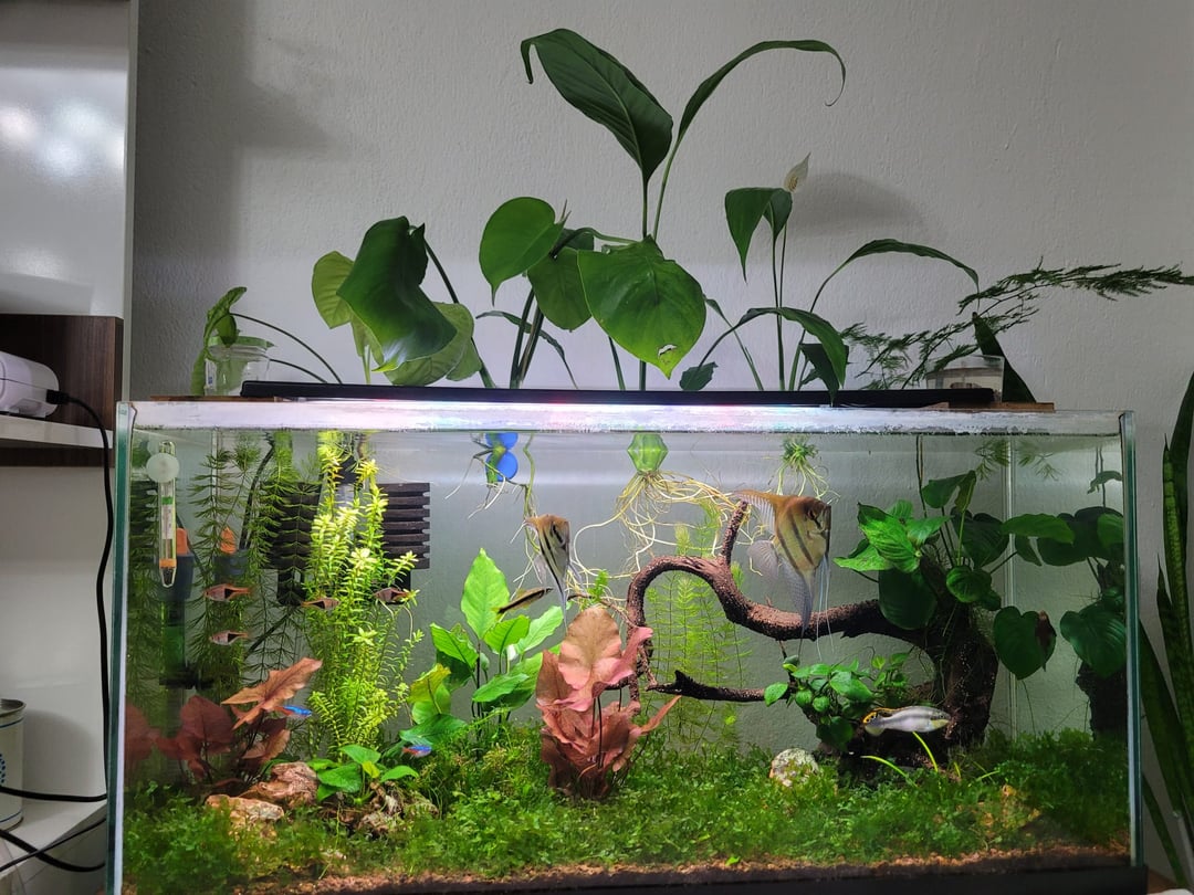 I got into the hobby with a gifted goldfish and a fish bowl, now I'm here. I started this tank with no experience and a small budget, and loving how it turned out.(1st pic from last summer)