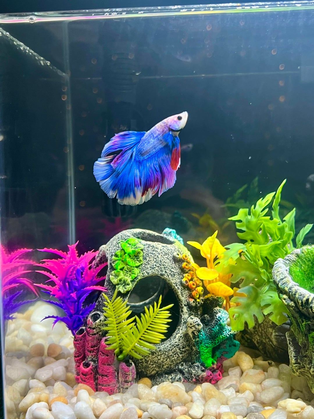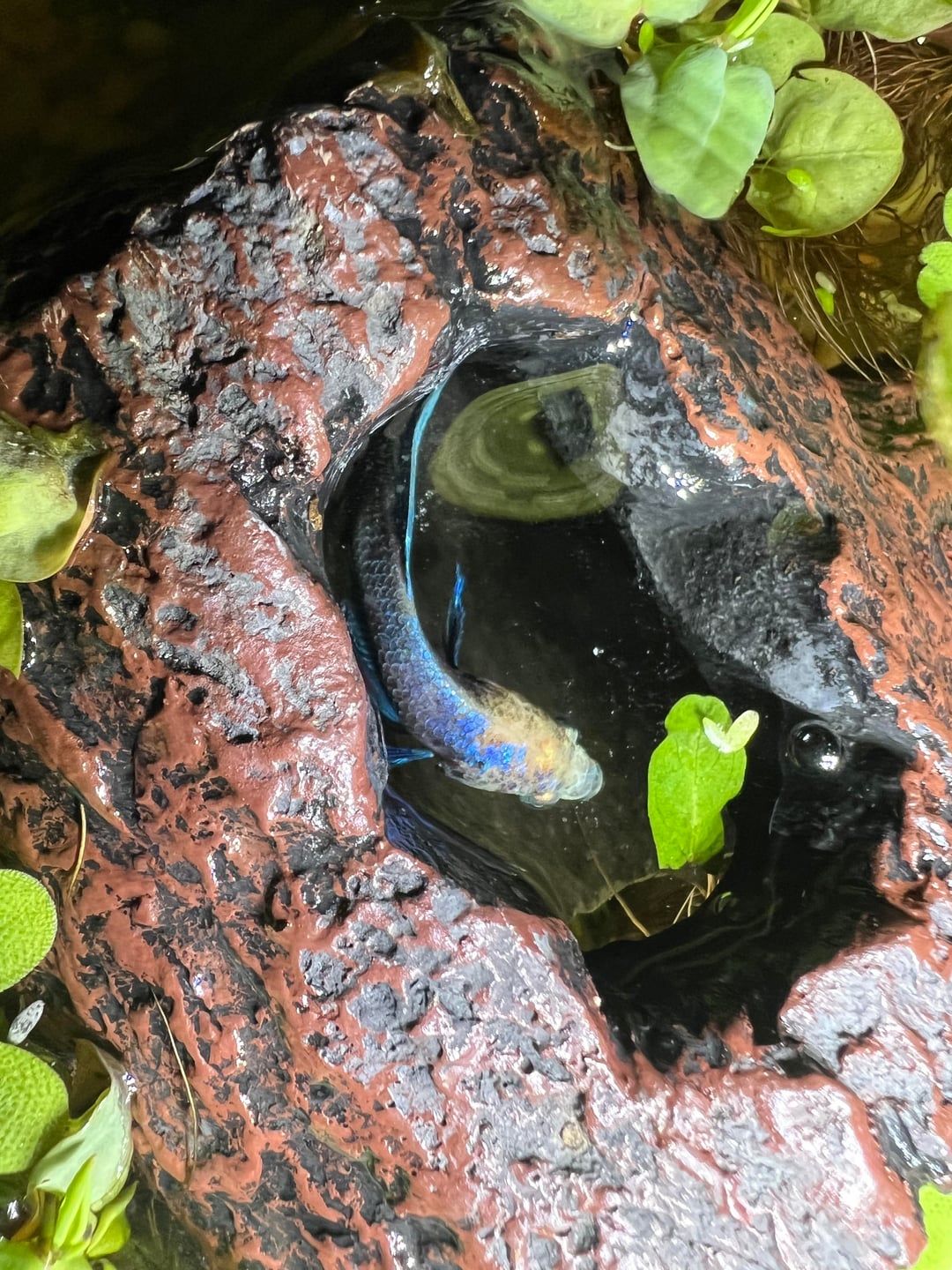 Petco advised every other day feeding because of bloat and I got him last June. I was feeding Ultra Fresh Betta Fish Food, Pro Shrimp Patties, 50% Sword Prawns + Akiami Paste Shrimps about 5-7 pellets once a day every other day. He eats them perfectly fine. I went down the TikTok rabbit hole of what not to do for a betta, so I took out all the artificial decor. I found a fish and plant store near me to get fresh plants, floaters, and a piece of driftwood. Also added a cutting of my Pothos plant to (hopefully) root in there.