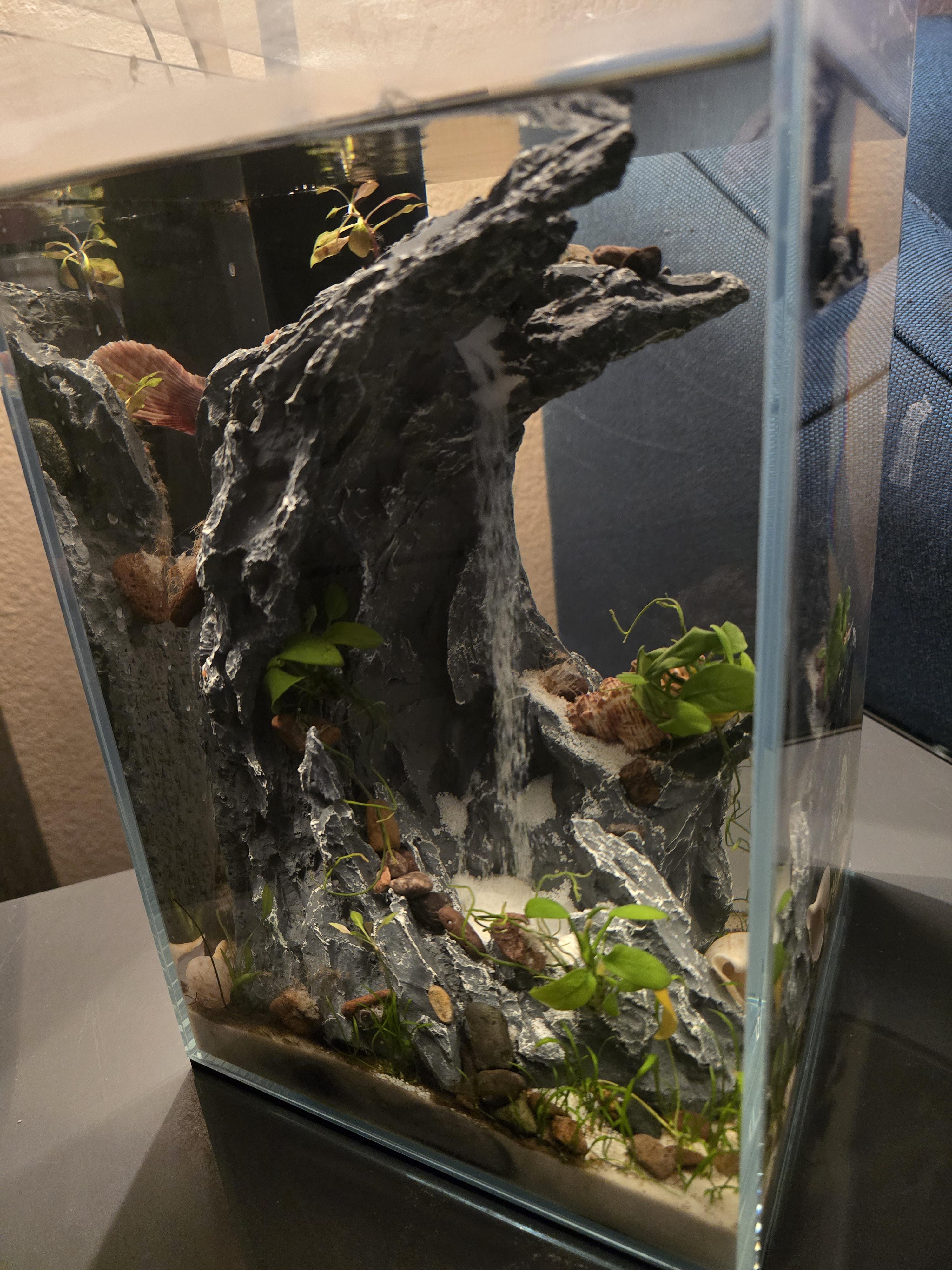 I had a couple ramshorn in there but they got sucked into the waterfall. I don't want to be an animal killing machine.