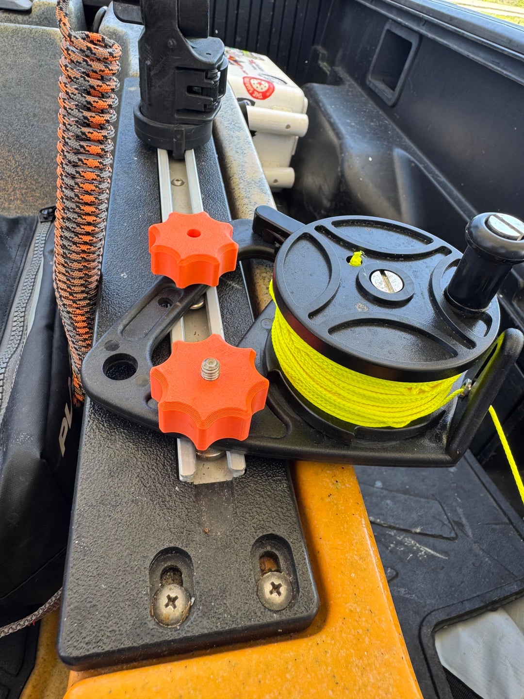 Just ordered a diving reel off Amazon, drilled a couple holes in it and rail mounted it with some leftover hardware. The reel doesn’t do the best job reeling an anchor back in but aside from that anchoring up is quick and easy.