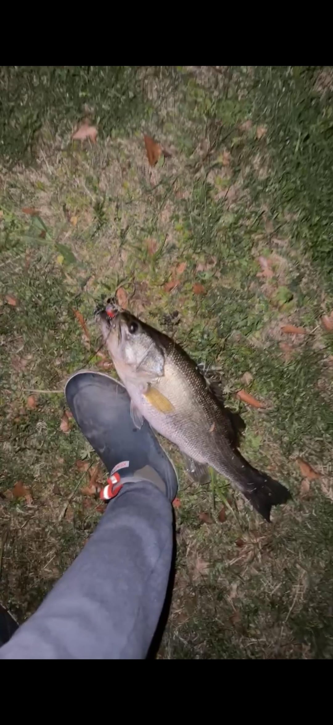 First 2 cast I caught two 4-5 lbers before I could even reel in the slack. (For reference my boot is a men’s size 11) The third cast I called a buddy and was joking about not being able to reel in the swim bait without catching another one and caught a 3rd. Each fish was bigger than the last. I ended up catching 3 4-5 lbers first 3 cast and then 18-20 1-1.5 lbers that night. The last picture is the only thing I caught at the same pond in 4-5 hours the night before which was a 16 inch 2.1 lbs crappie on a bass spinner bait.