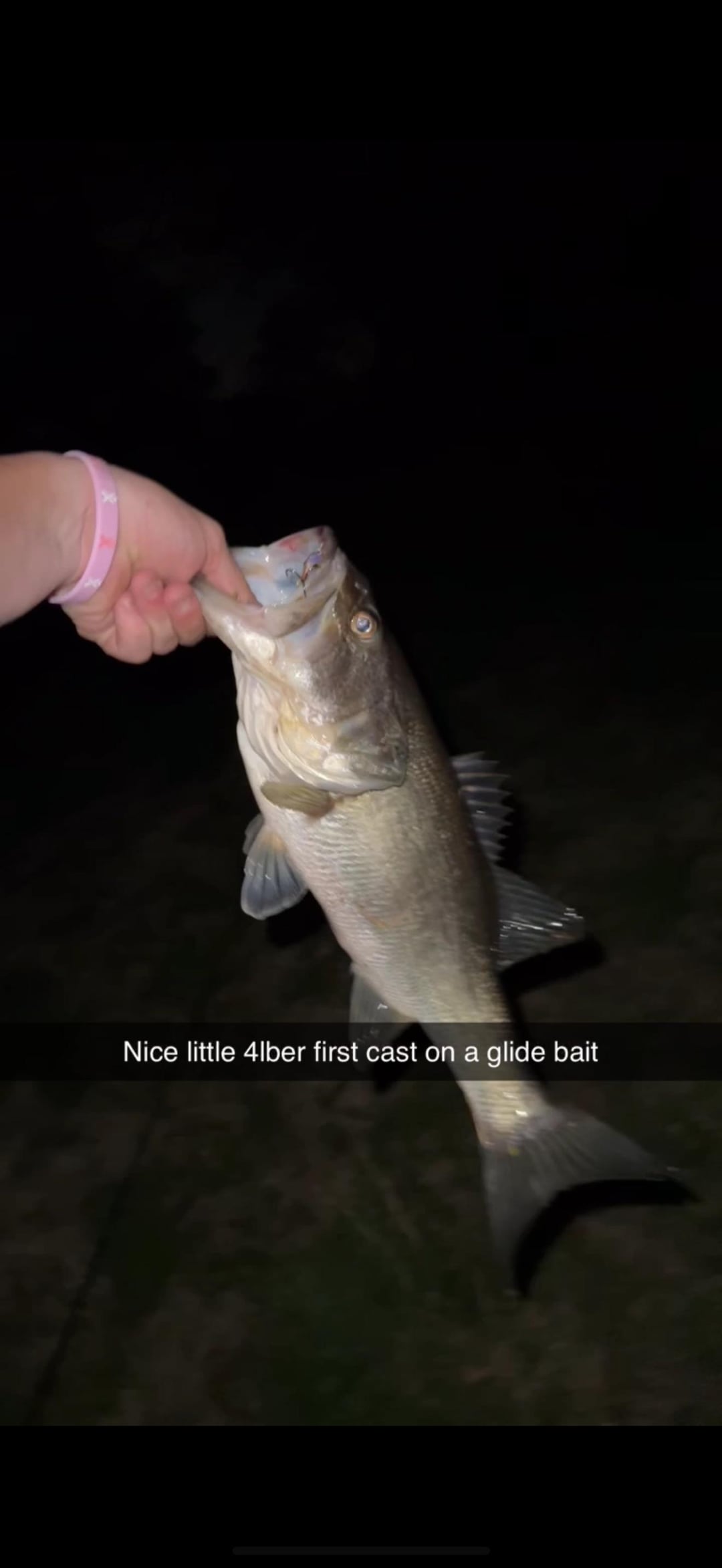 I took his advice and got a bucca 6 inch glide bait and a 3.75 inch baby bull swim bait. These were my first 3 cast in a pond with the 3.75 inch swim bait.