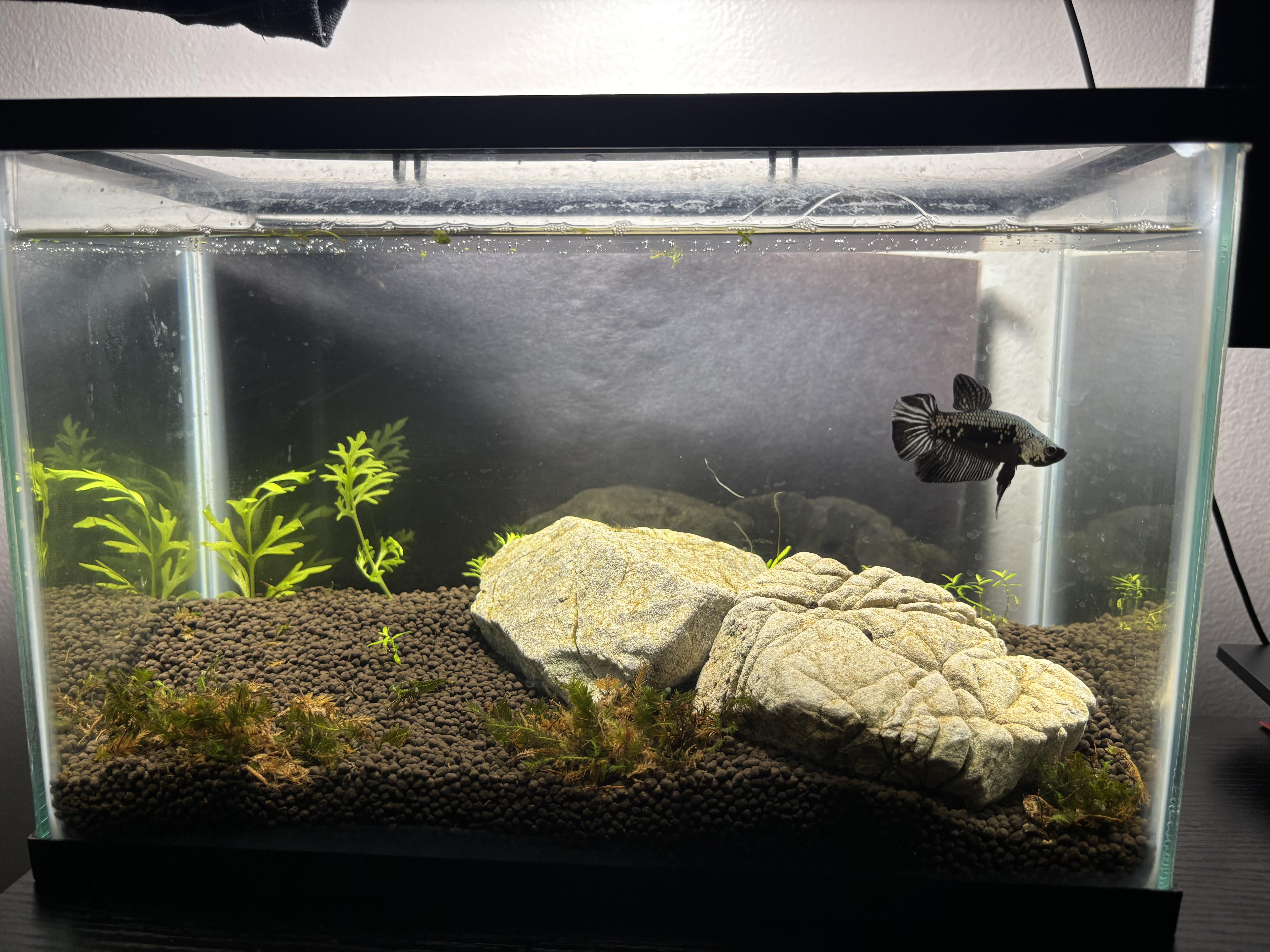 Despite what many will say, that tank is sufficient for now. Optimal? Nah, but it’s far better than the tiny cups they often live and suffer in.