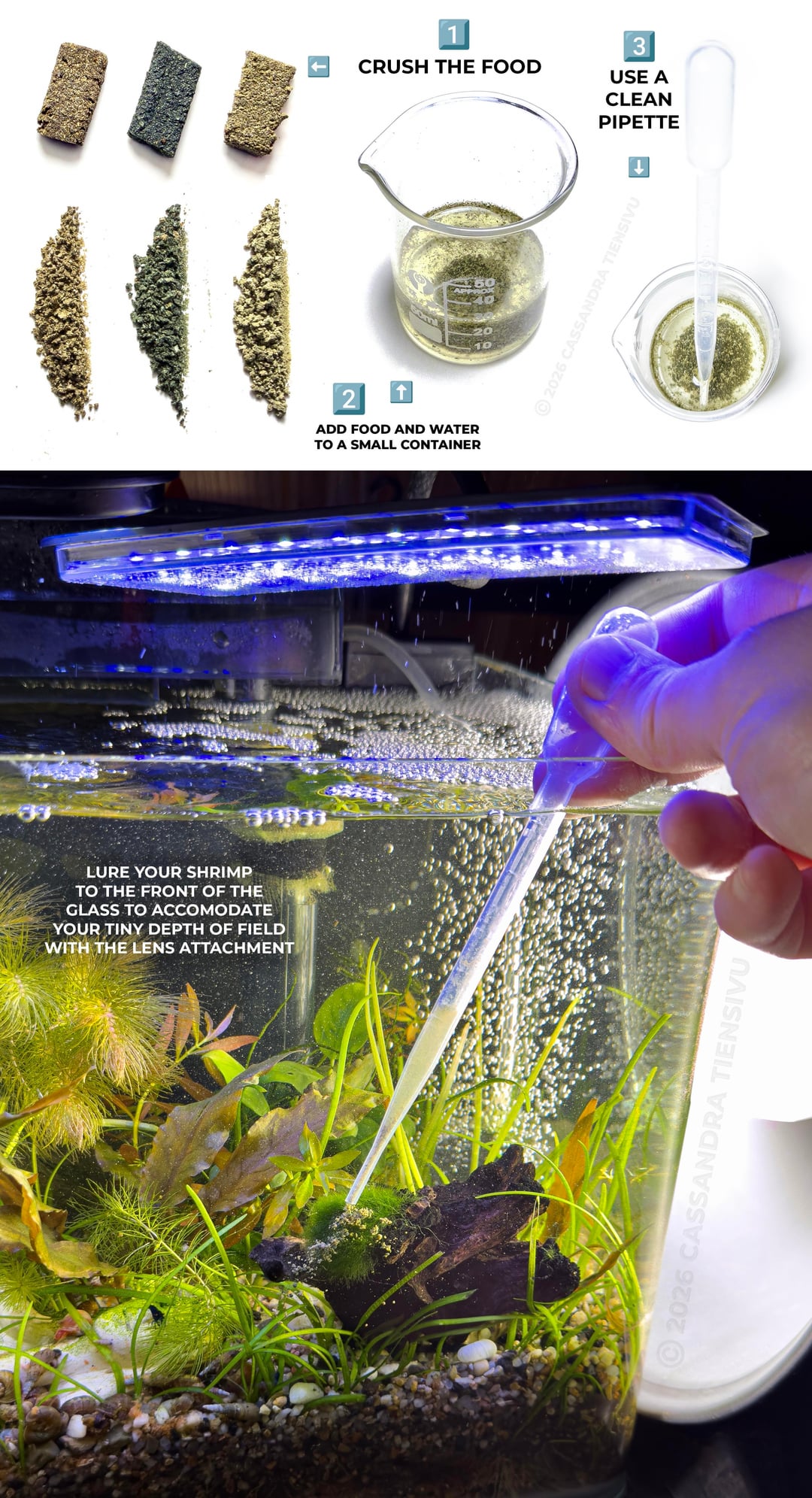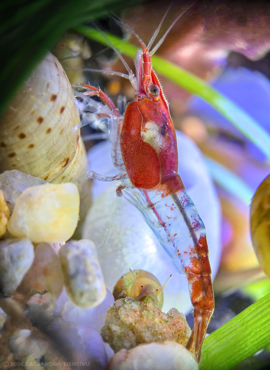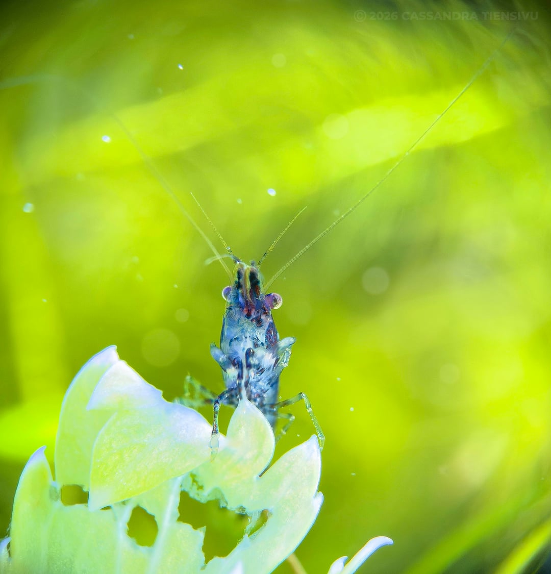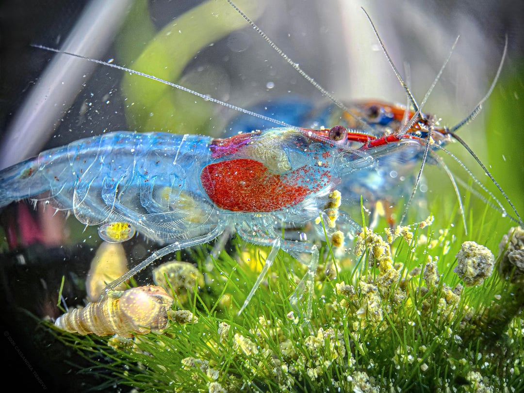 In order to capture clear photos of your shrimp (or other aquarium critters) with this setup, you need to entice your subjects right up to the front of your glass and try to get them to be rather stationary.