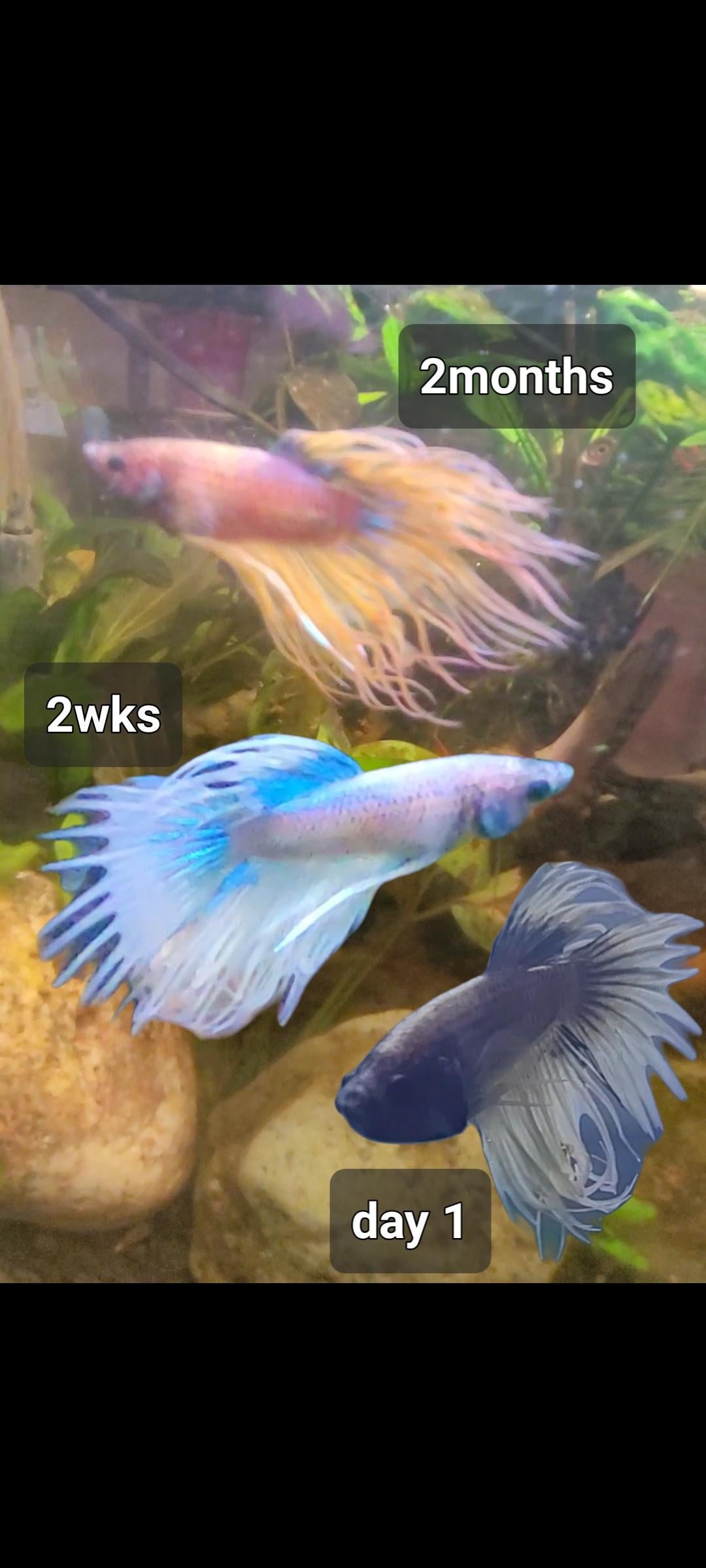 1. Unfortunately I do not think he is going to be as colorful as the first picture. I’m more leaning towards the colors I had with my first betta! He was a rose tailed! I’m more on Google prediction.