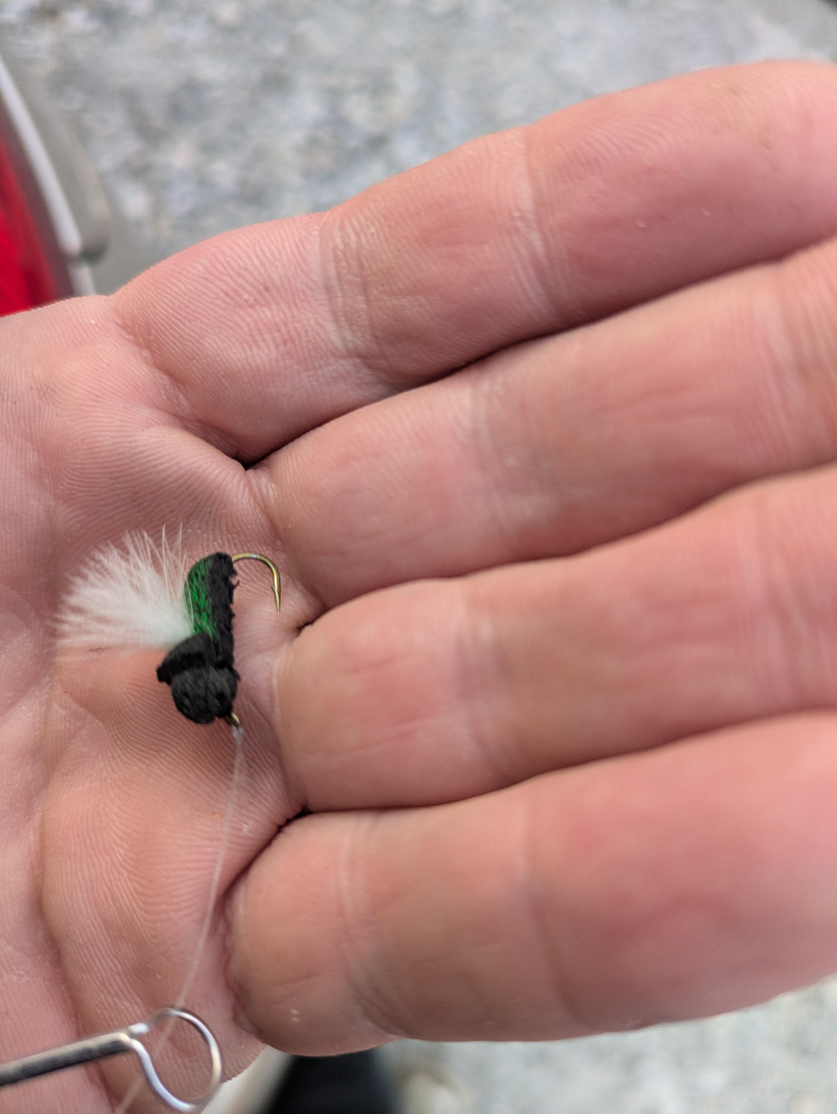The legs have been destroyed but after a week of tossing zebra midges and wooly buggers to stocked rainbow trout with little luck I switched it up last night to these when I saw them rising and it was on. Today I went out to a different spot and limited out in 30 minutes on this one fly. Not sure when the legs got lost but it didn’t seem to matter. I’ve never had top water bites hit so hard!