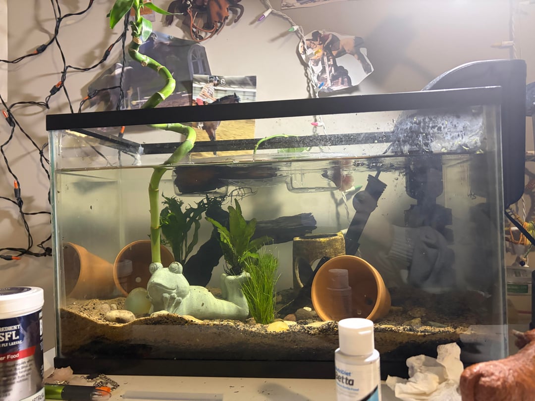 currently working on the planting and driftwood situation, I can’t have floaters because his large self will eat them, lmk suggestions for plants