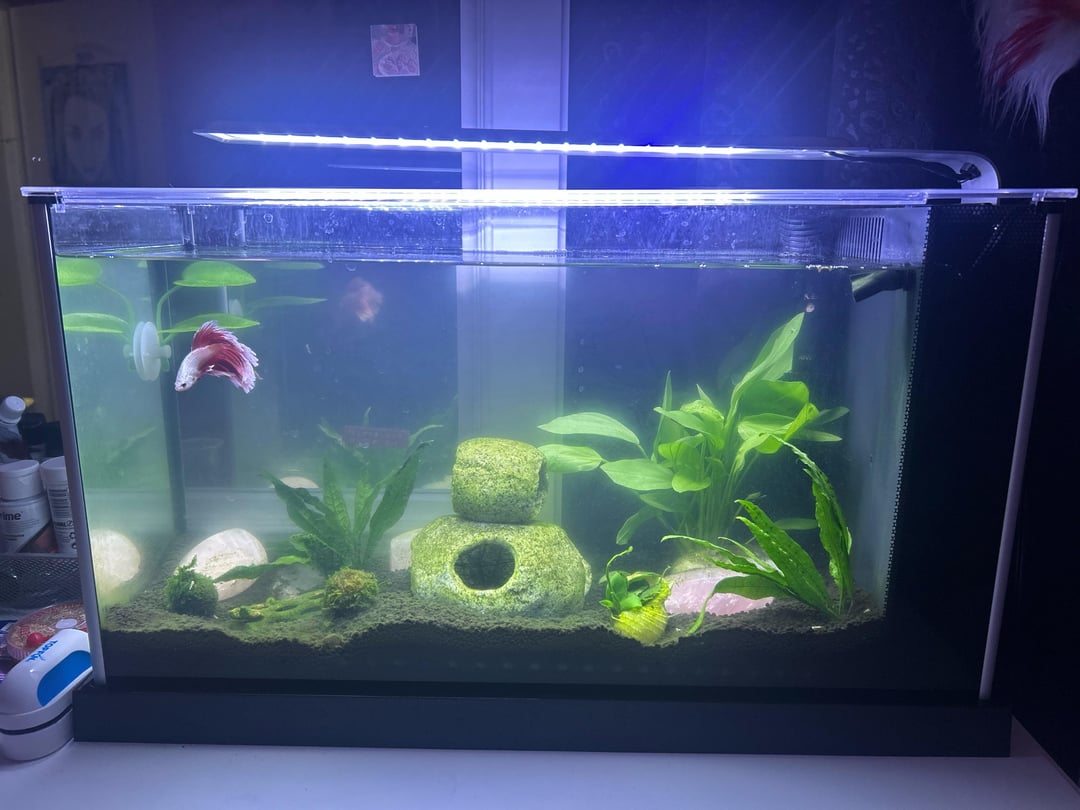 Ok so I’ve had this guy for I think around 4 months this is his third tank he’s had and also the biggest I feed him blood worms in the morning and then give him bio-gold at night, and I don’t know if he’s actually healthy. He swims around a lot at night, and if there is any tips for the tank please tell me. Also I know the tank is dirty and am going to clean it again soon, it was cleaned this weekend already but got dirty again. When I first got him and put him in the tank the morning after he was almost dead literally upside down and I feel really bad about it so I’ve been trying really hard to keep him healthy and happy.