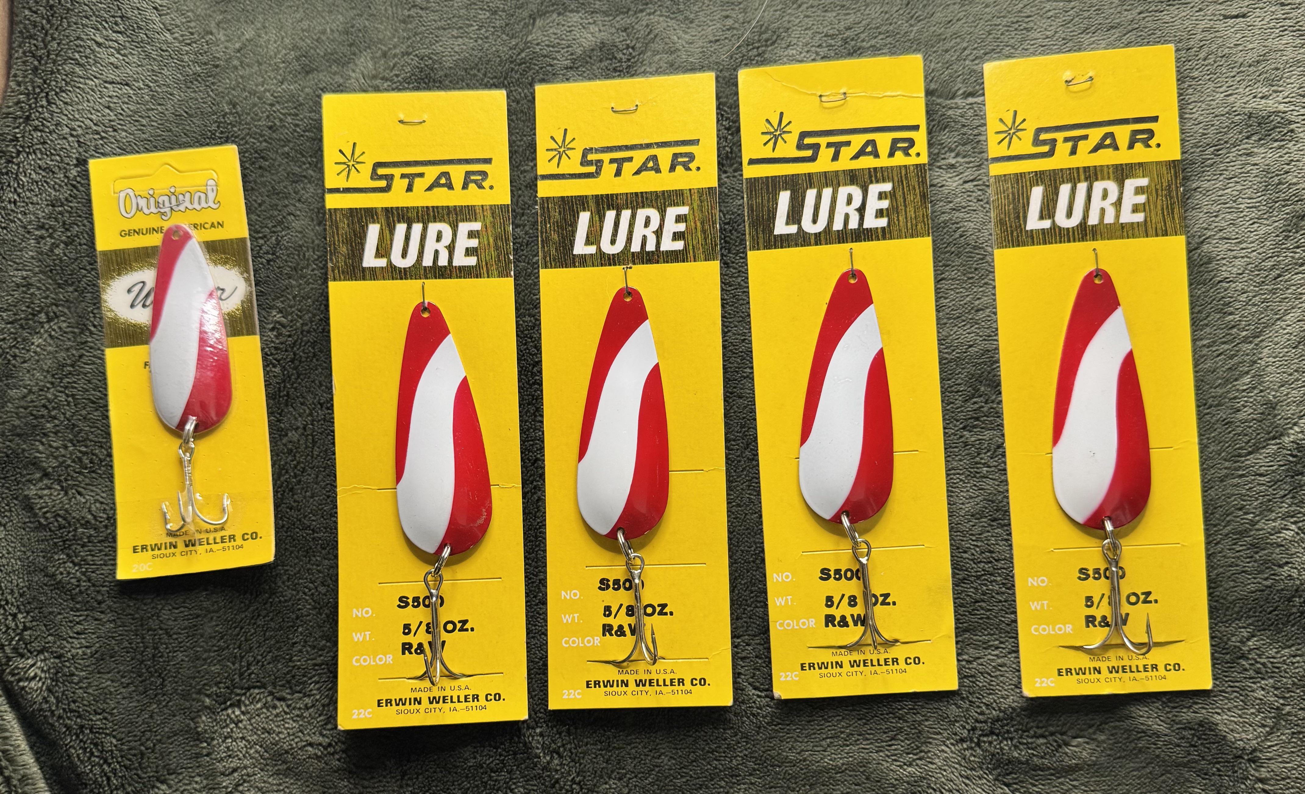 All the information I’ve found for these Weller baits have packaging like the smaller one on the left. These four are legit Weller baits but say “star lure” on top. I haven’t been able to find any information on why these say “star lure” and everything else looks like the small one. Maybe a special edition?