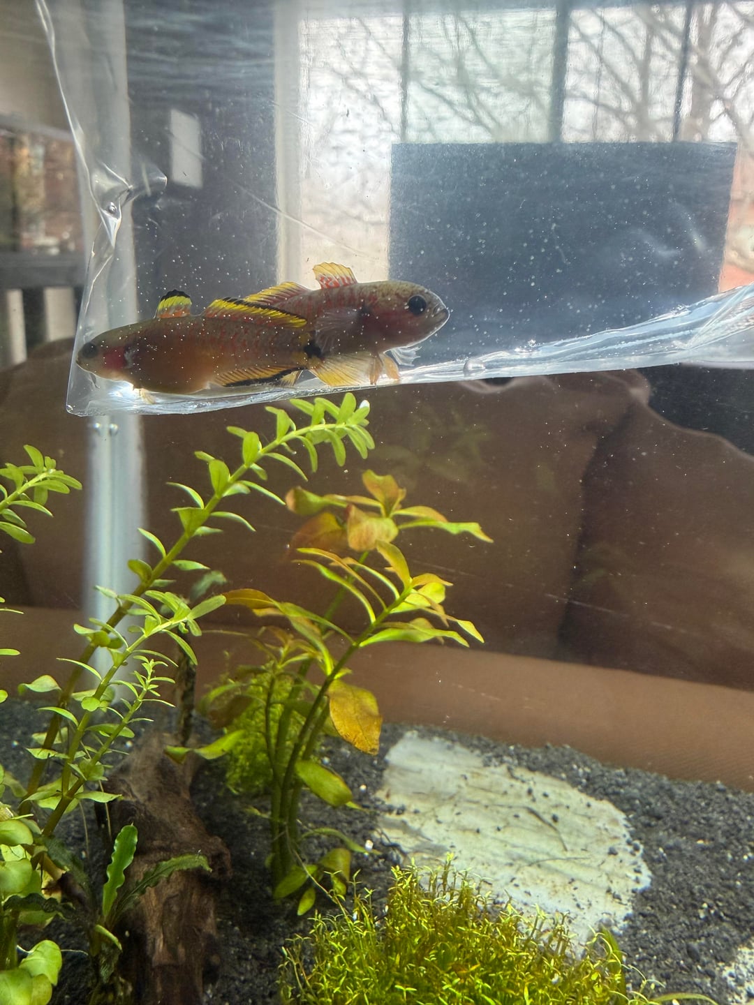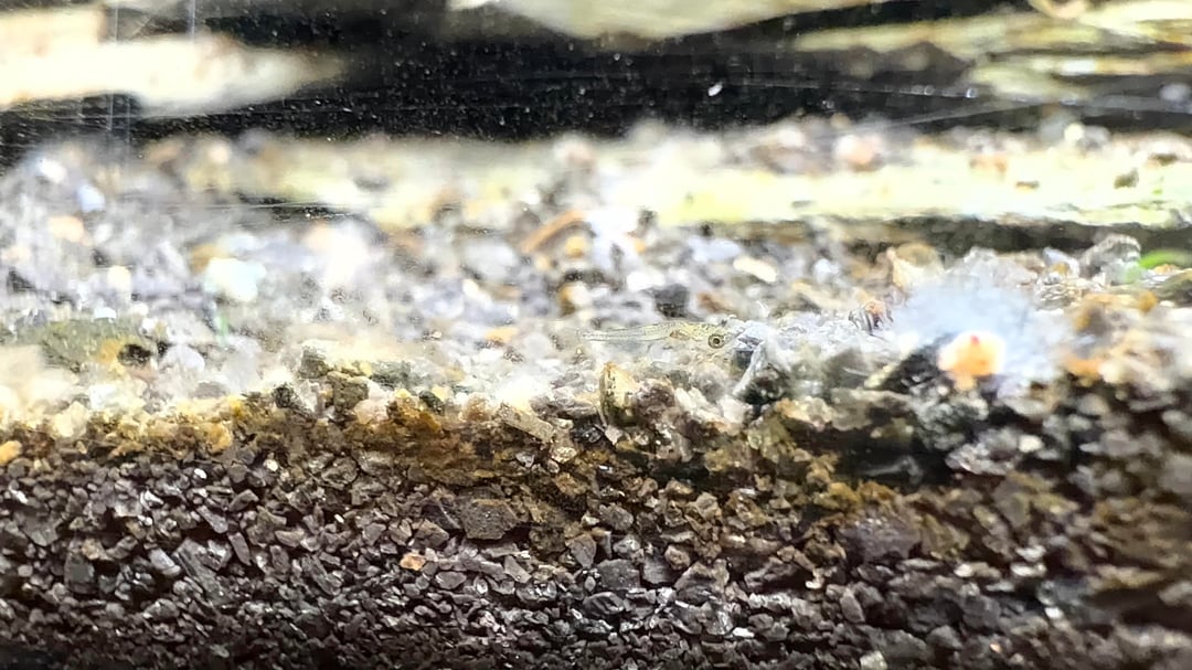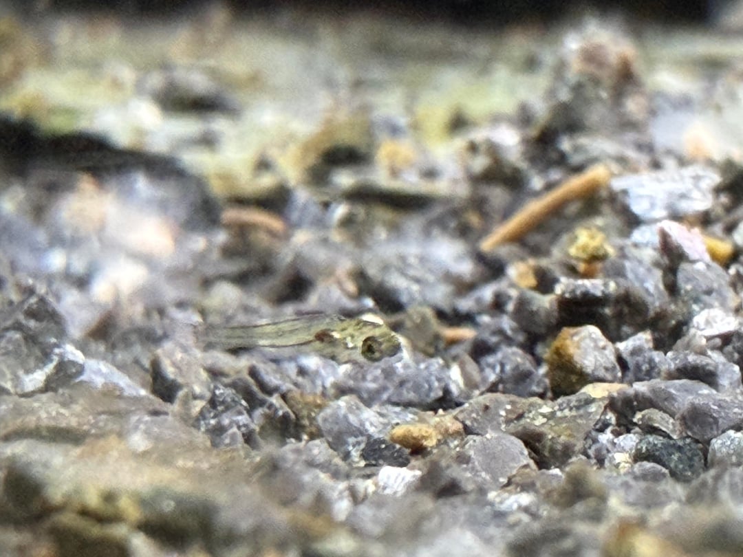 I bought Cosmo and Wanda a few weeks ago. As you can see Wanda was heavily gravid, they wasted no time. First night in the tank they spawned. I was very excited as I figured it would be a long while before they were comfortable enough to do so. Anyway, 8 days later and my little fry started swimming out. I counted 5 initially and had 2 survive, but as soon as Cosmo came out from fanning they went back and immediately spawned again. Very sadly Wanda passed due to a very aggressive bacterial infection, but today the second clutch of eggs started swimming out. Before I left for work I counted a total of 7 fry swimming around including the two from the first clutch. Poor Cosmo hasn’t eaten in almost 3 weeks (he takes is fatherly duties very seriously). Fun fact I learned after doing some research; peacock gudgeons will mate themselves to death. Nervously awaiting his emergence from the cave hoping he doesn’t go into a ravenous rampage and pick off all his young. I didn’t have time to set up a secondary tank for the fry. I was very upset to lose Wanda so quickly she began to recognize me very quickly and she always greeted me at the glass. Hoping to get at least 1 female from these clutches so her lineage can live on. Funny how you get into this hobby for something relaxing but it is mildly stress inducing. 😅
