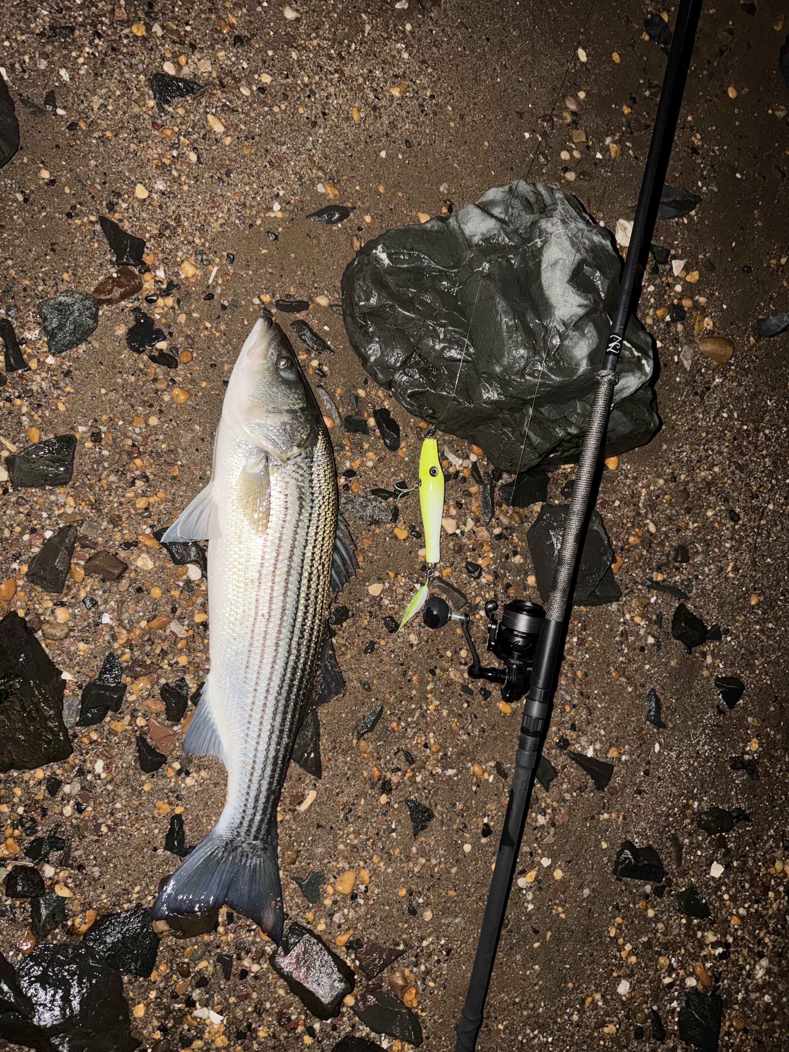 Picture is my first striper from the surf, 3-30-2026.