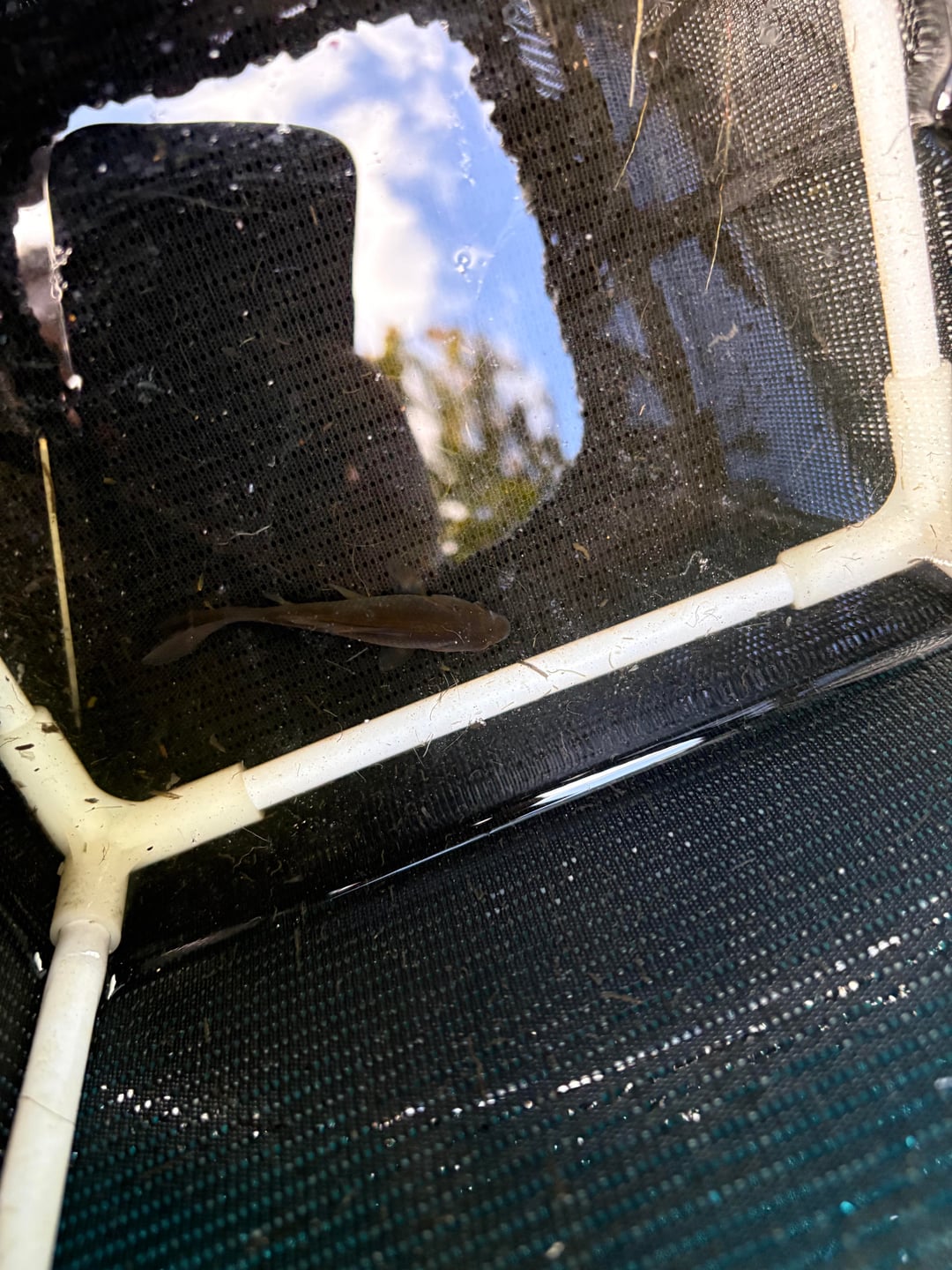 So I have a fish in my fish pond but… it is not one of my fish. I have 3 large goldfish around 150mm long, however the guy is only 50mm long. I found him in the netting around my water pump. Could it be a baby from one of the goldfish? Not sure if I should release him to the pond or he might get bullied/eaten.